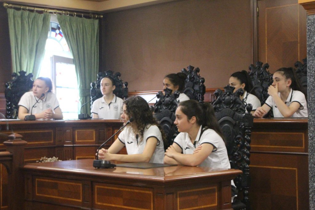 Entregouselle á Concelleira de Deportes, Elena López, unha camiseta da Selección Española firmada polas 14 integrantes da Selección Sub17, con tres galegas, mentres as xogadoras e diversos membros da Federación recibiron unha bolsa con manteigadas.