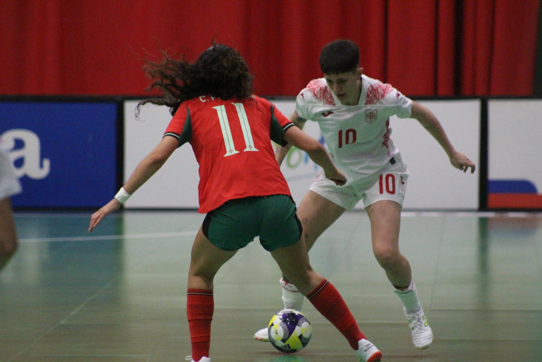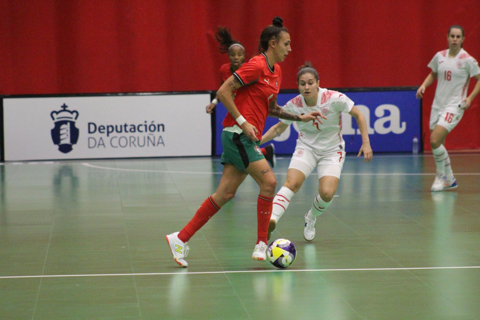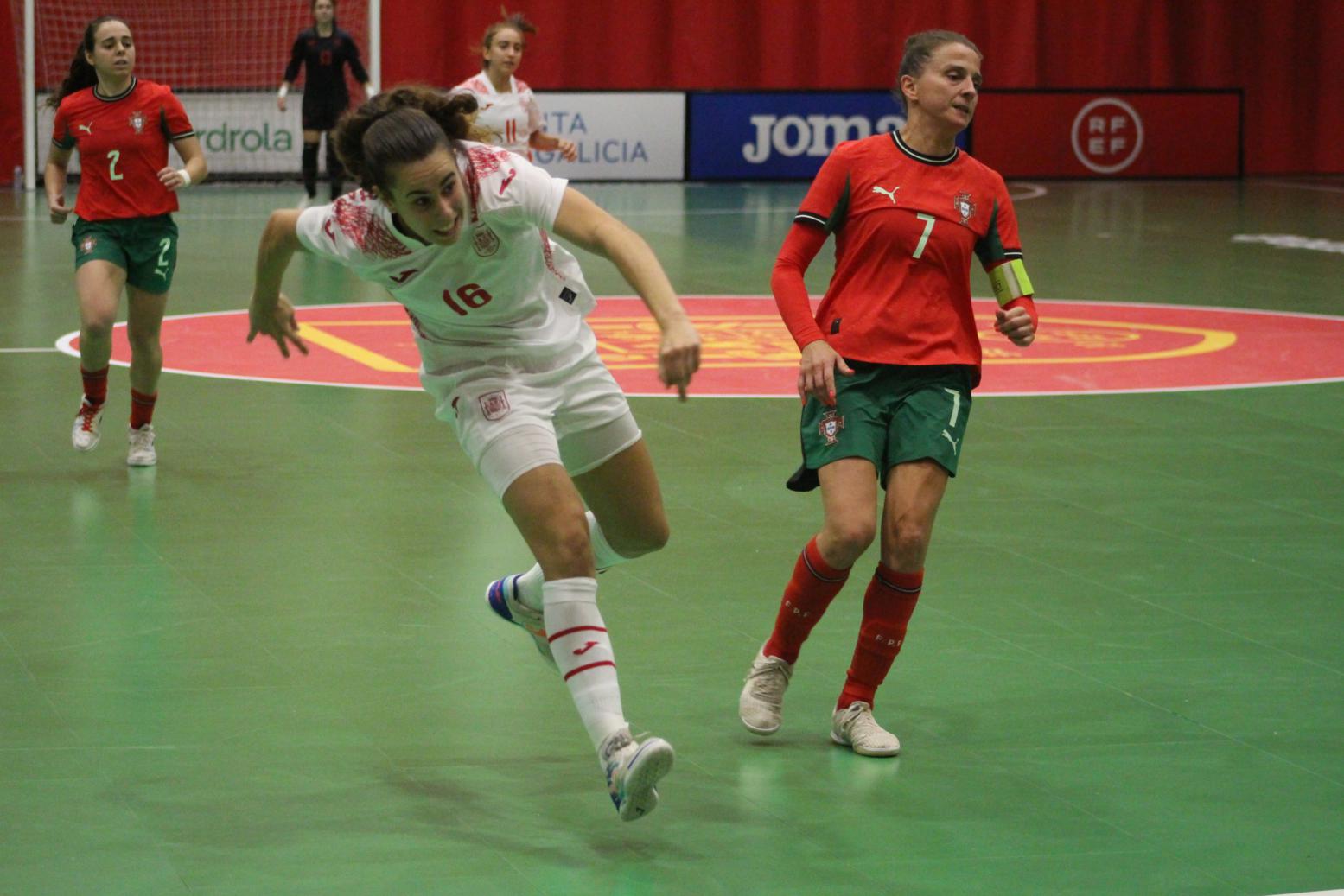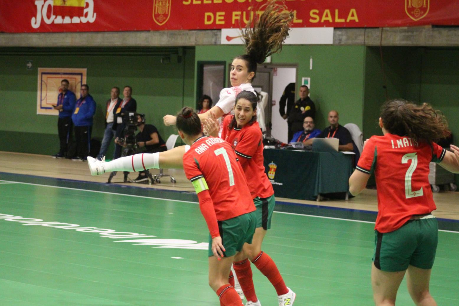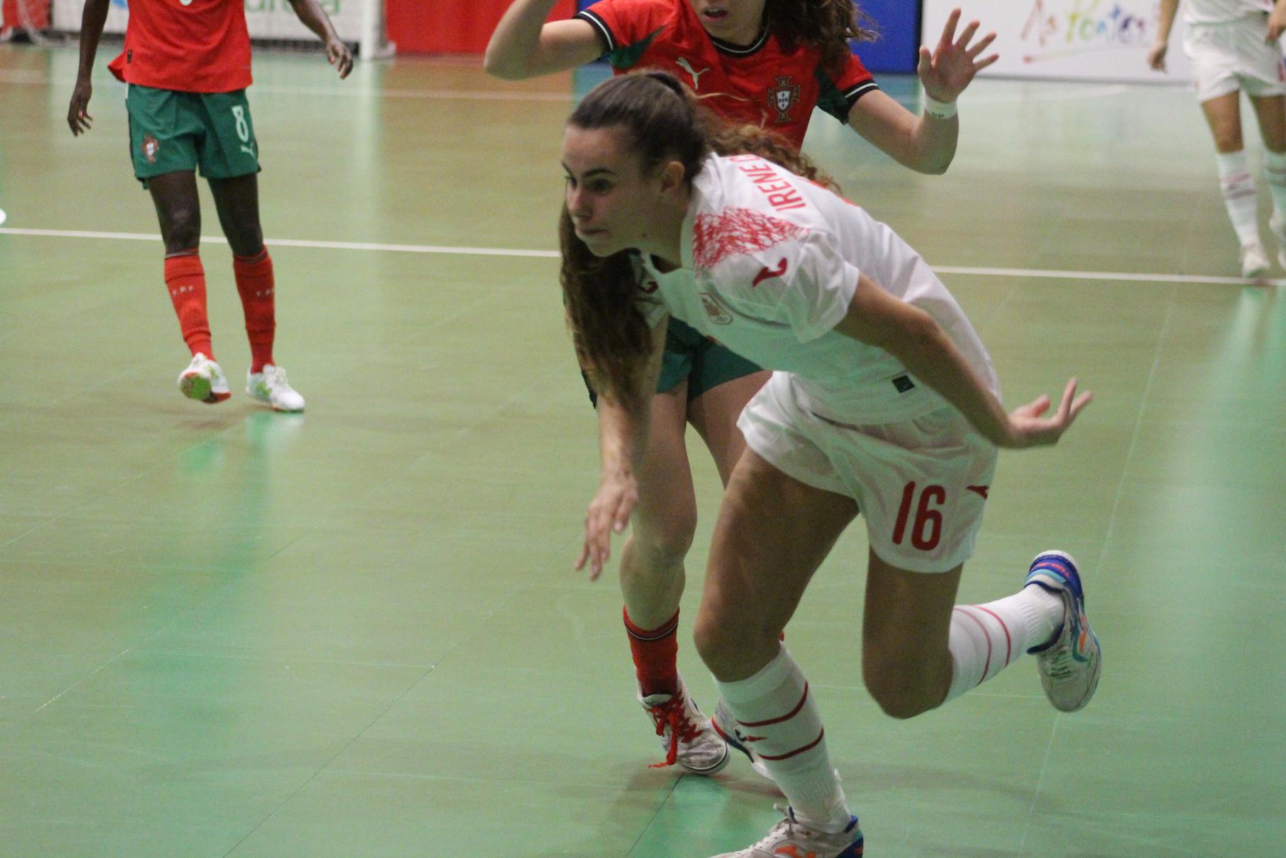 No primeiro período adiantouse por dúas veces o combinado español, cos tantos de Irene Samper e Mayte Mateo, pero igualou Portugal coas dianas de Carolina Pedreira e Inés Matos, e incluso se puxo por diante co 2-3 de Kika.