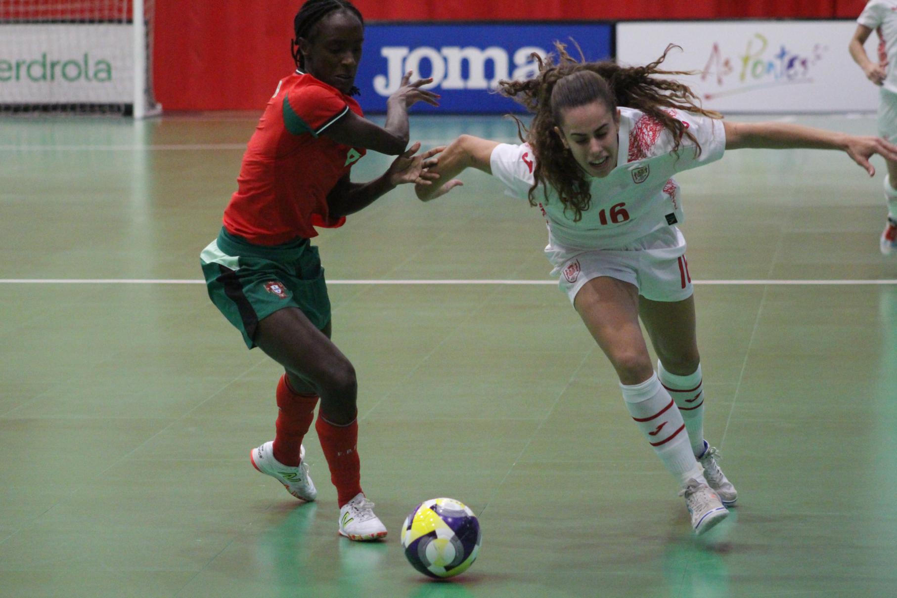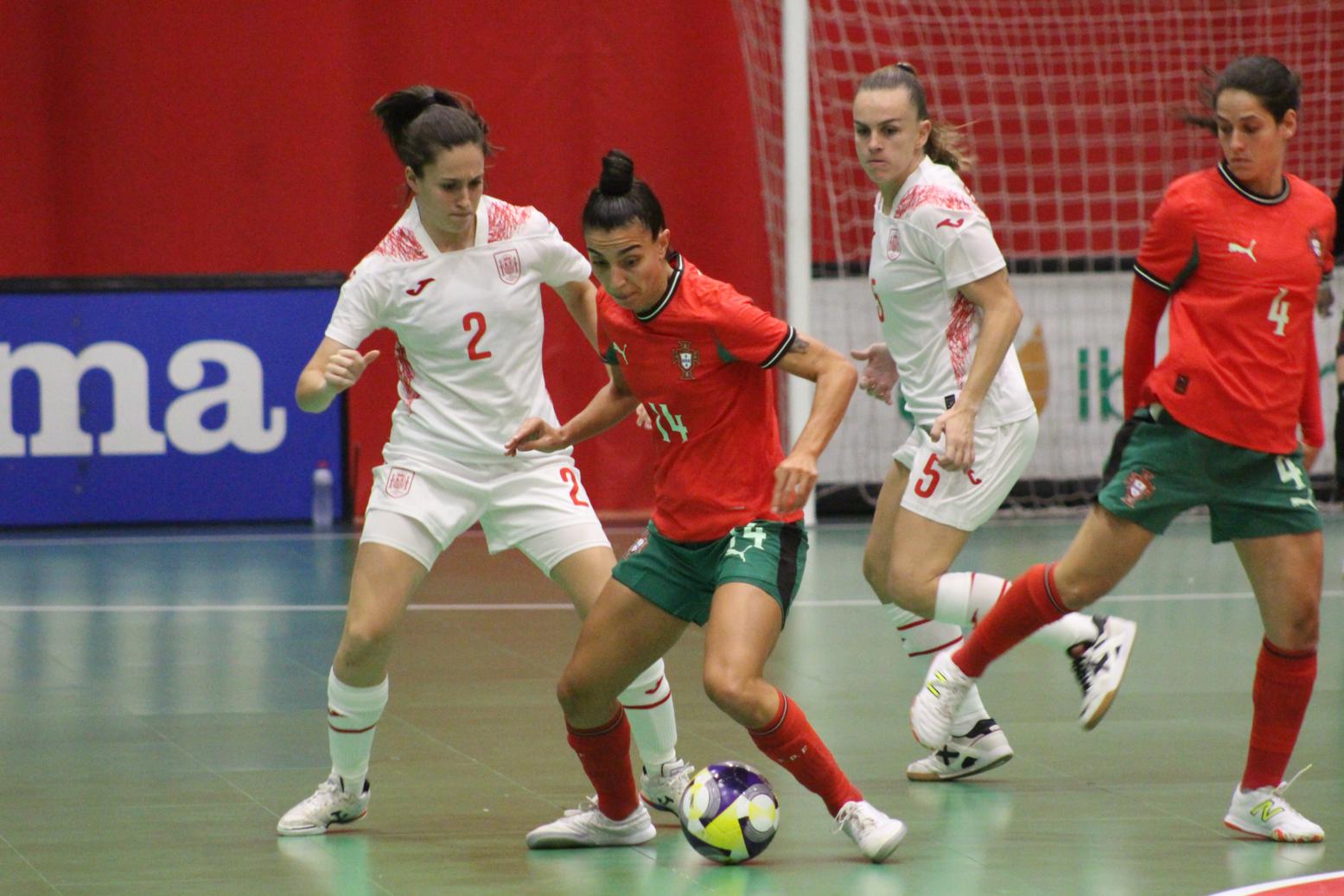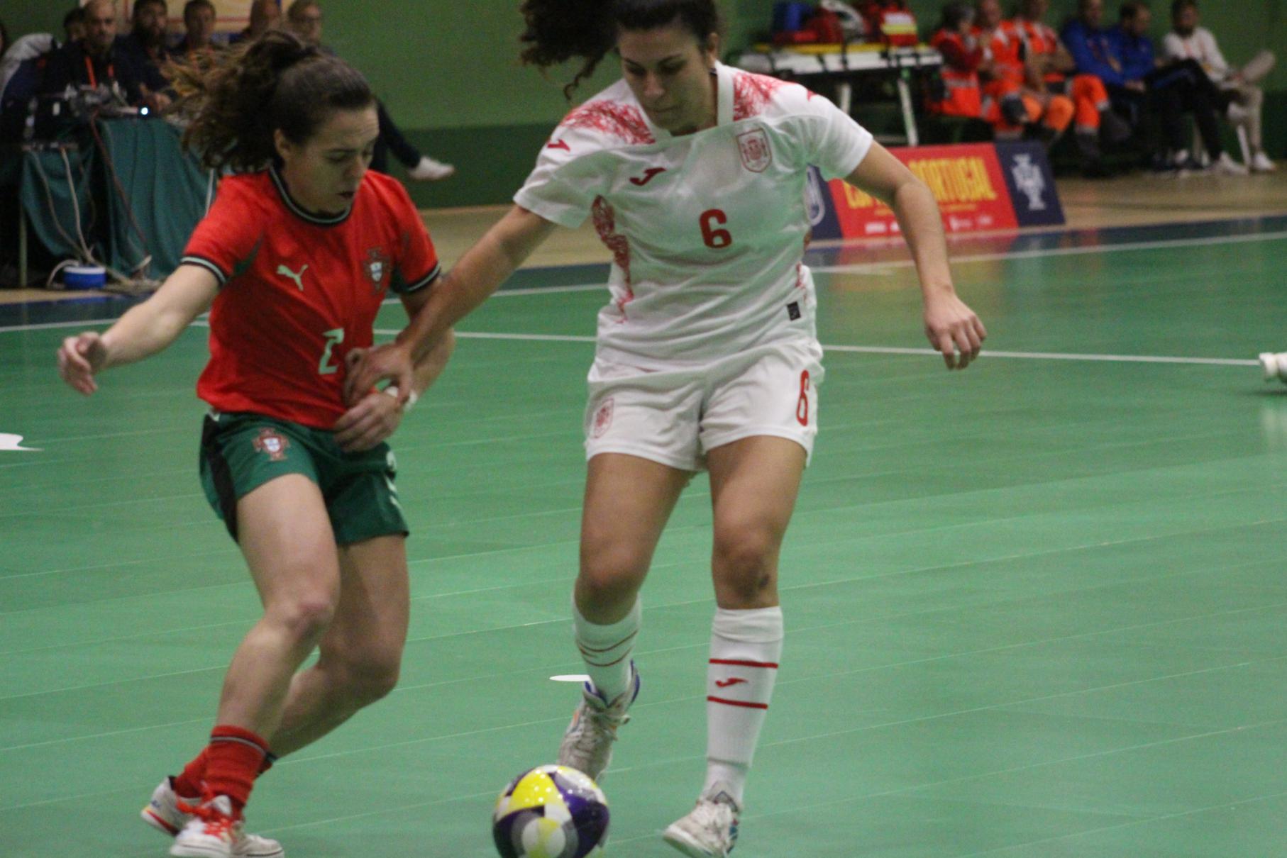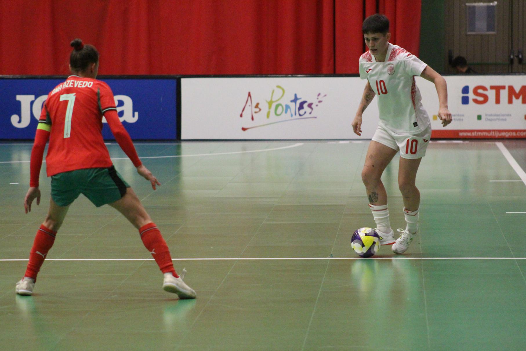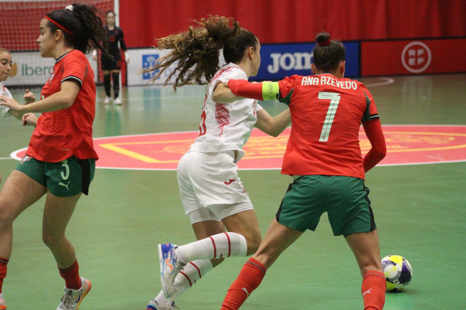 No primeiro período adiantouse por dúas veces o combinado español, cos tantos de Irene Samper e Mayte Mateo, pero igualou Portugal coas dianas de Carolina Pedreira e Inés Matos, e incluso se puxo por diante co 2-3 de Kika.