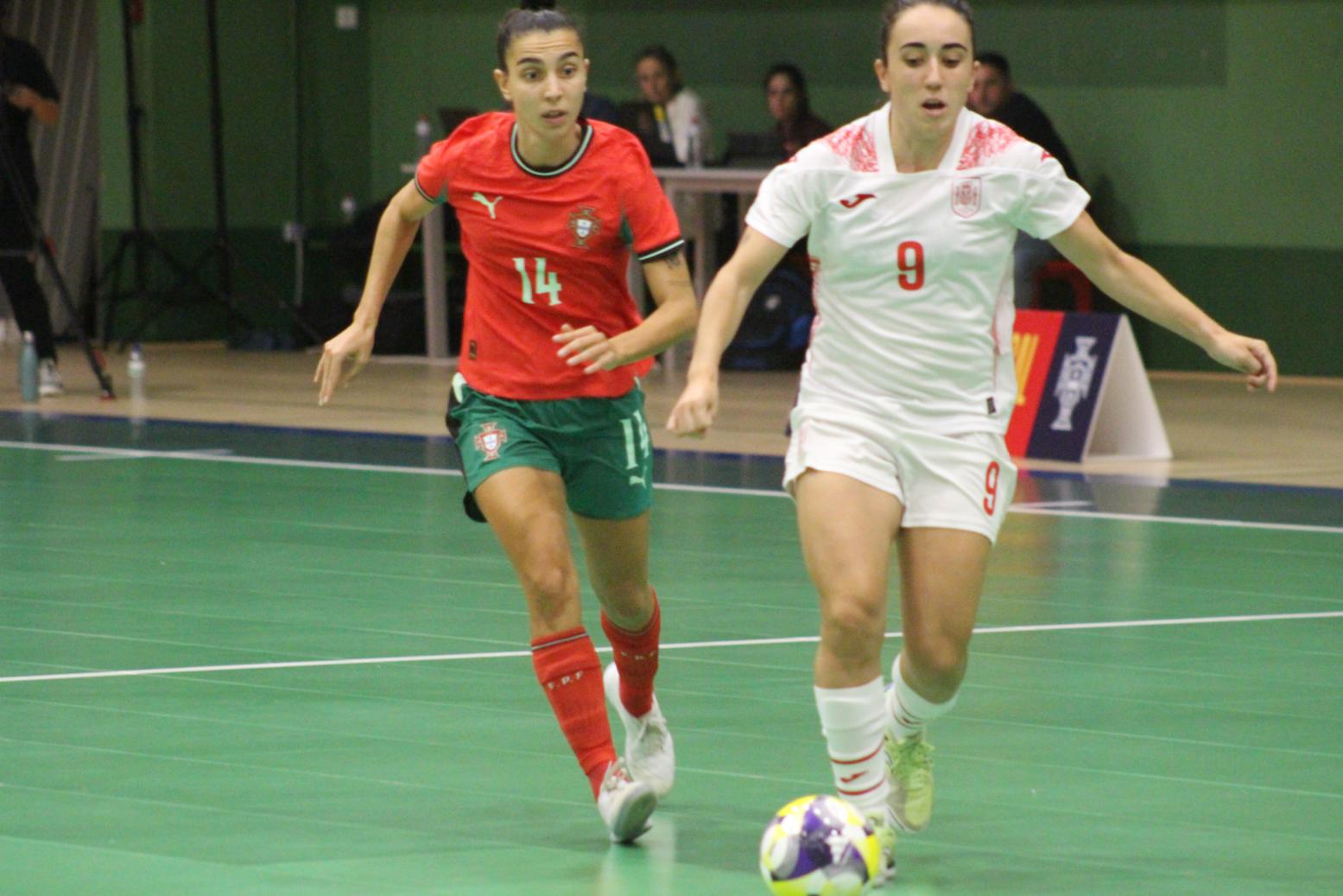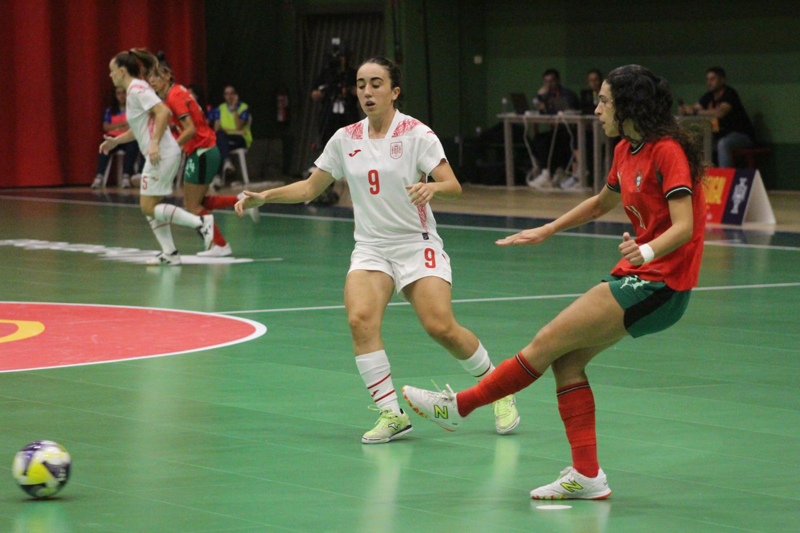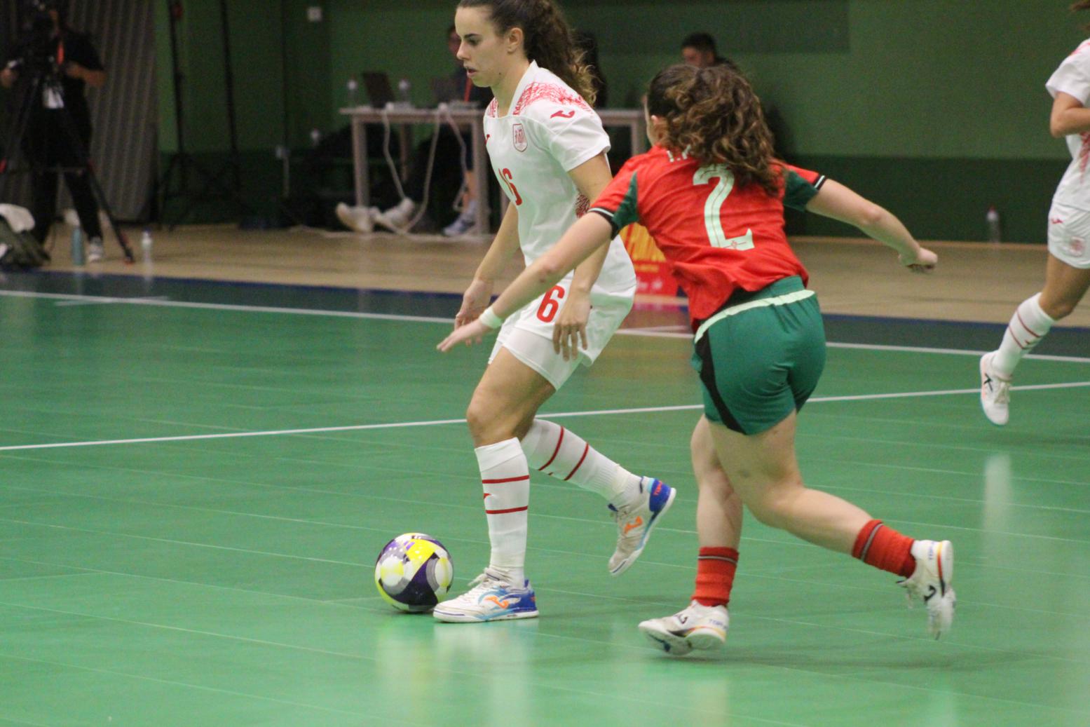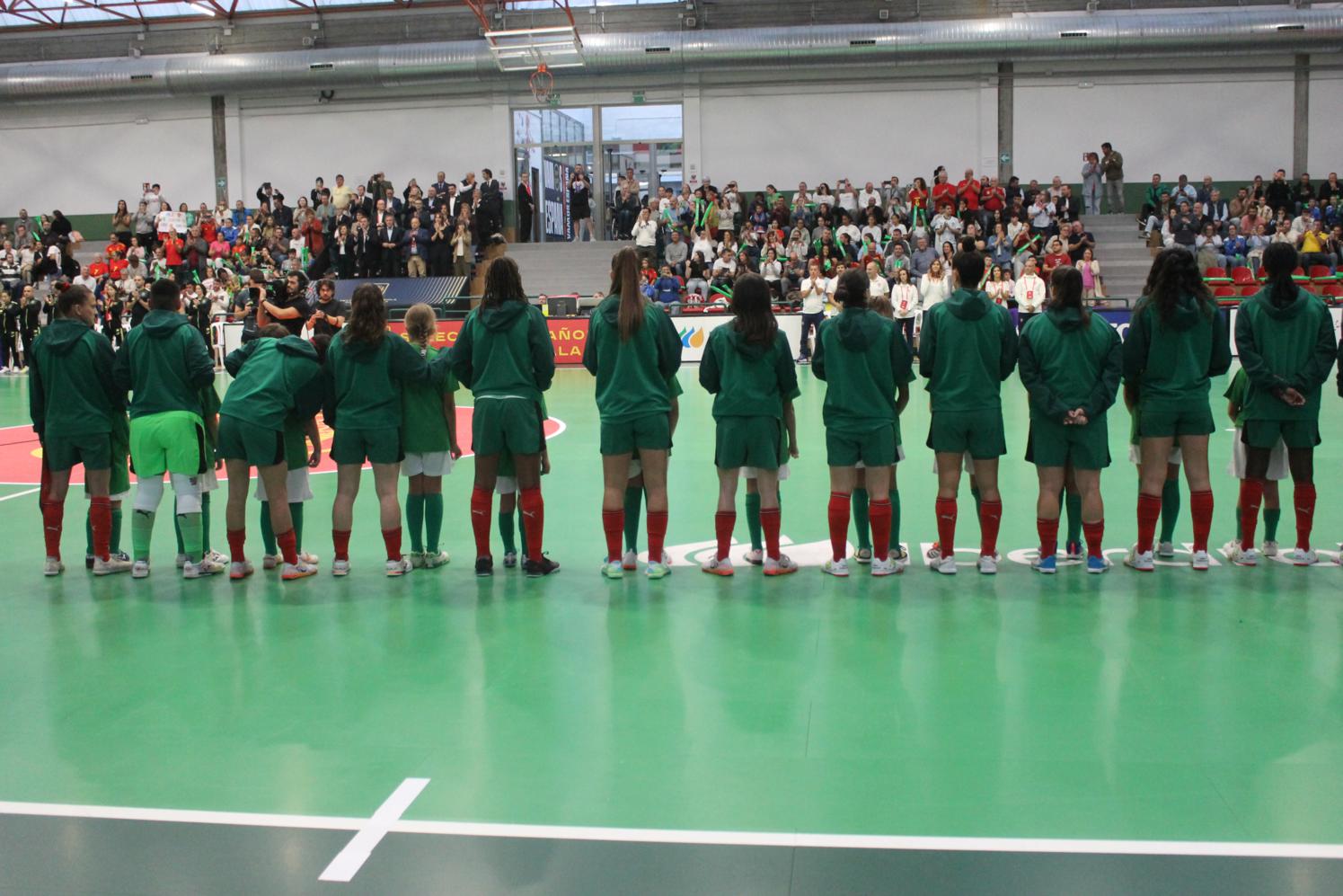 No primeiro período adiantouse por dúas veces o combinado español, cos tantos de Irene Samper e Mayte Mateo, pero igualou Portugal coas dianas de Carolina Pedreira e Inés Matos, e incluso se puxo por diante co 2-3 de Kika.