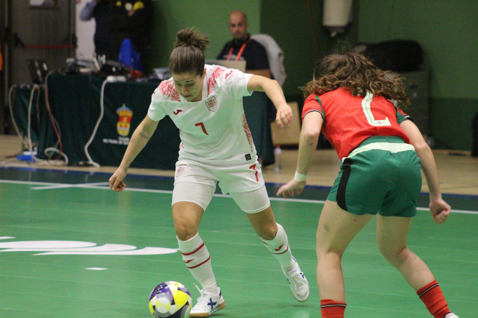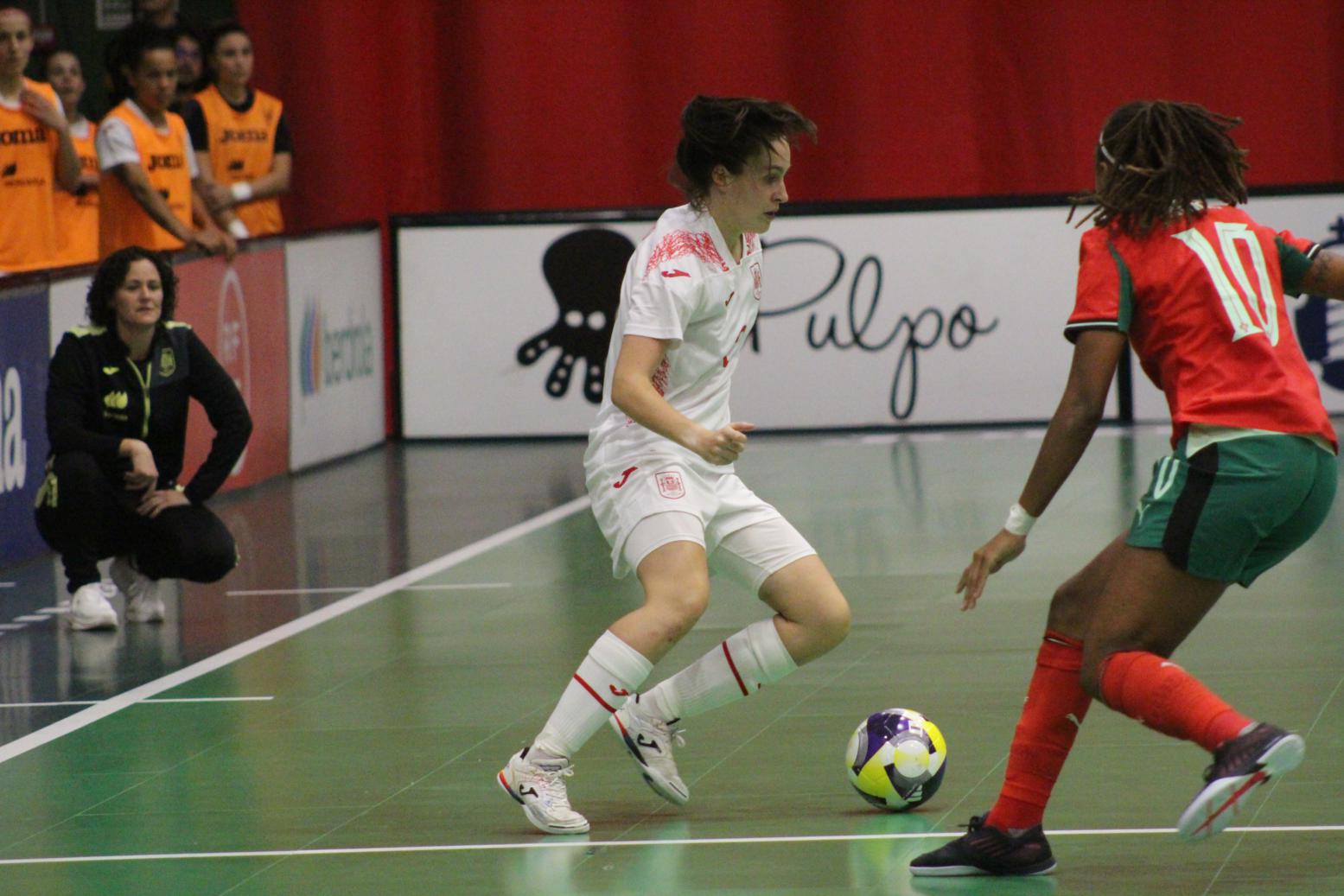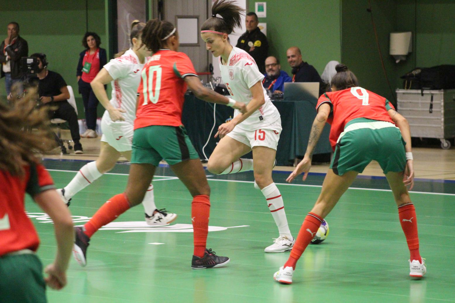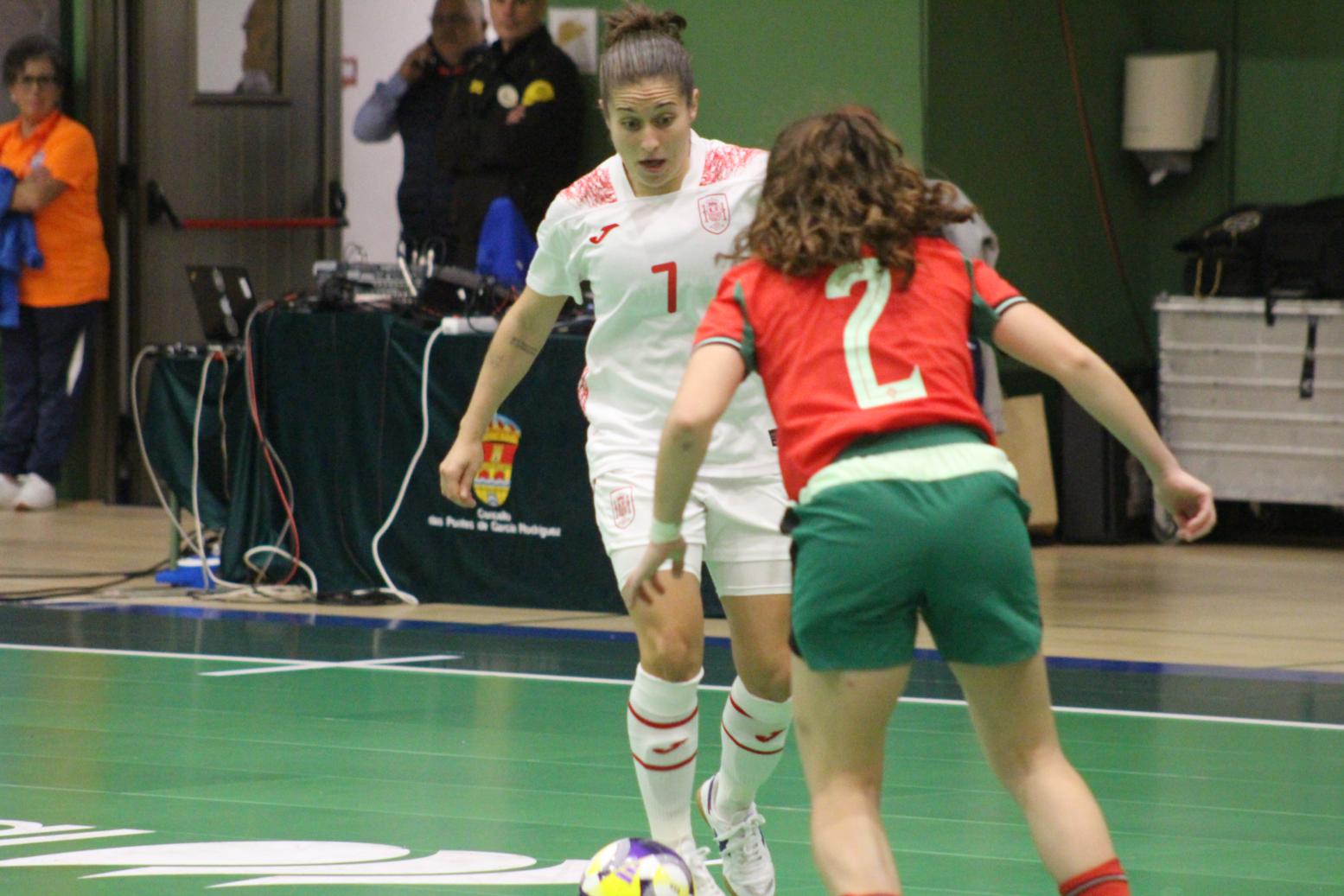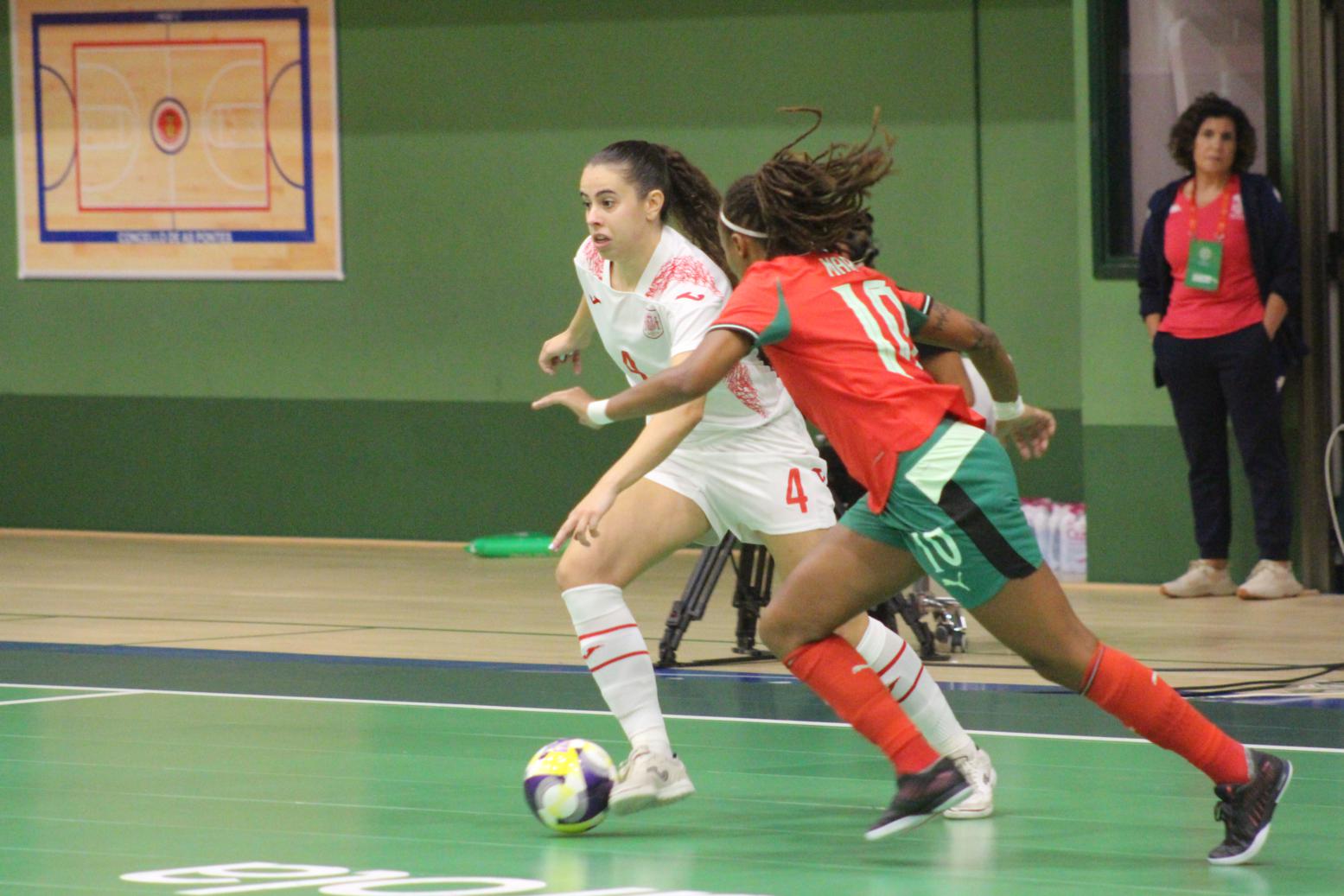 No primeiro período adiantouse por dúas veces o combinado español, cos tantos de Irene Samper e Mayte Mateo, pero igualou Portugal coas dianas de Carolina Pedreira e Inés Matos, e incluso se puxo por diante co 2-3 de Kika.