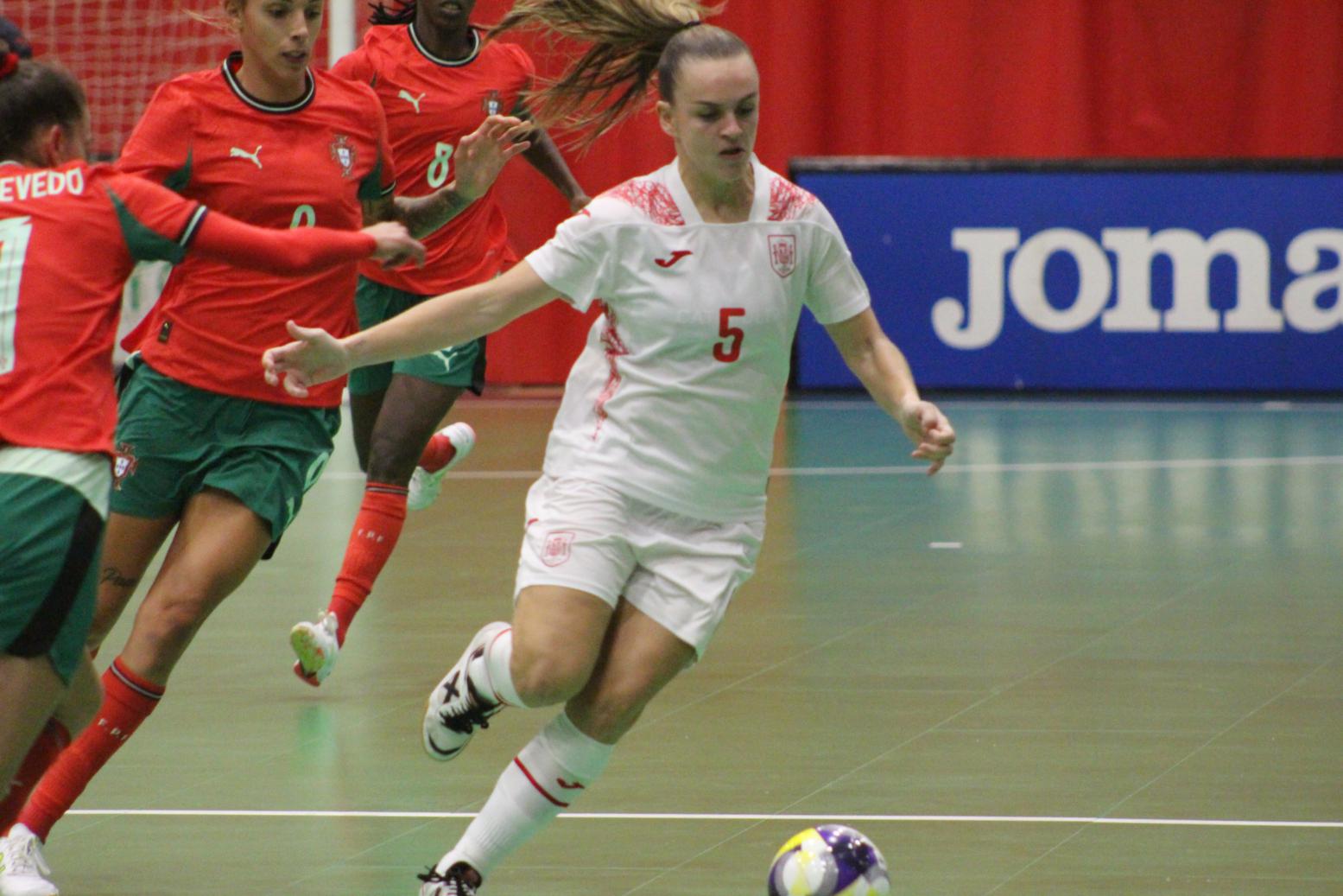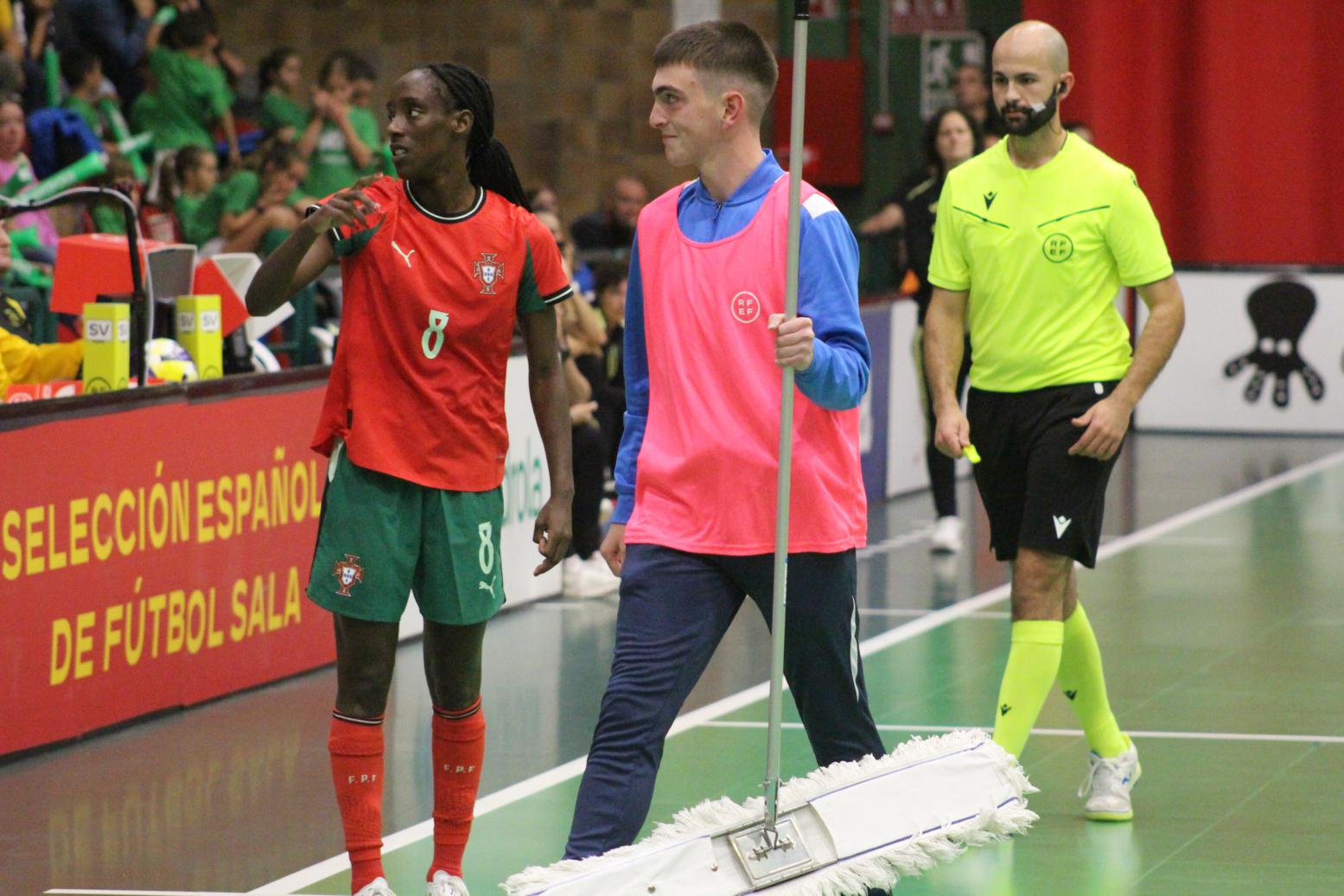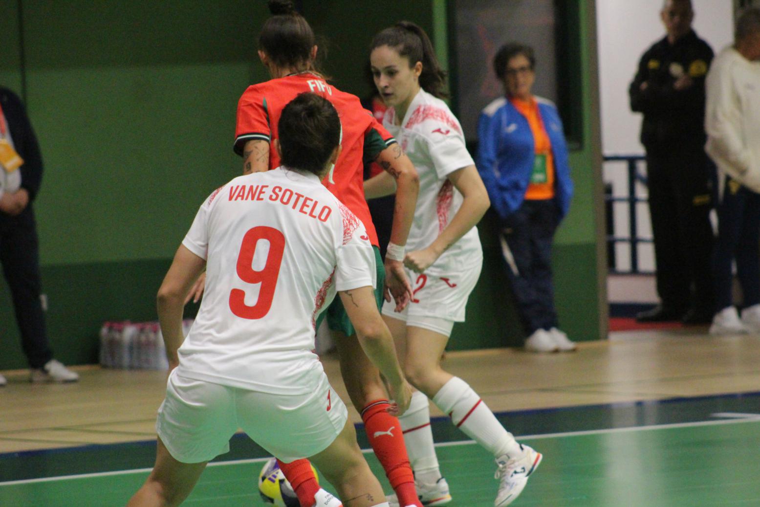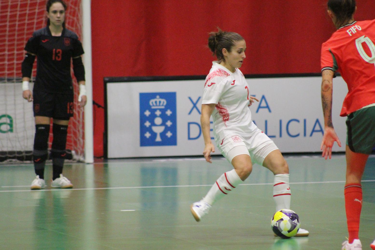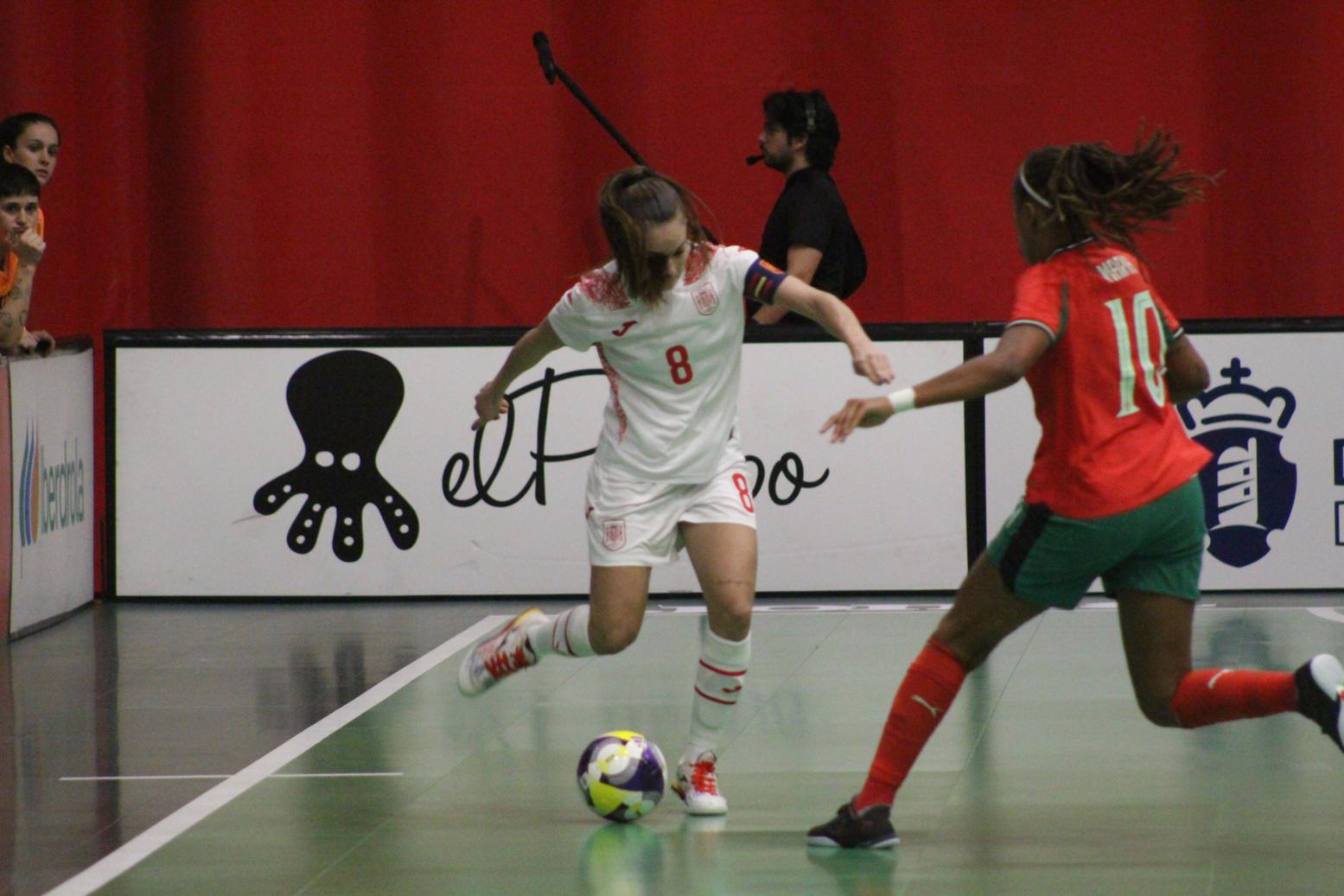 No primeiro período adiantouse por dúas veces o combinado español, cos tantos de Irene Samper e Mayte Mateo, pero igualou Portugal coas dianas de Carolina Pedreira e Inés Matos, e incluso se puxo por diante co 2-3 de Kika.