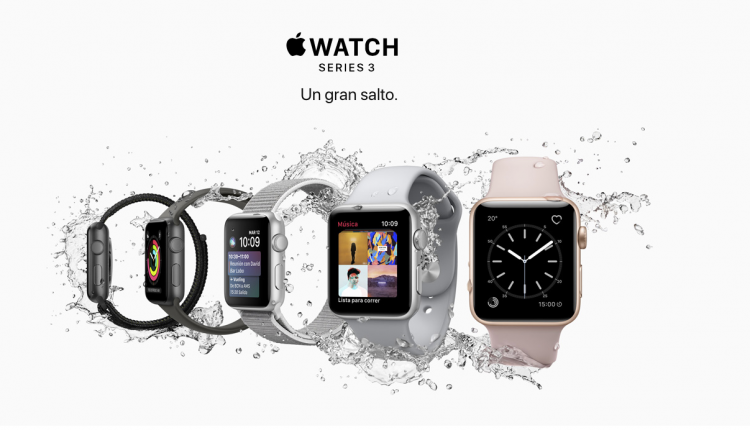 Apple Watch está disponible en dos tamaños de caja diferentes, 38mm y 42mm. La serie de relojes Apple Watch Serie 3 (GPS + Celular) estará disponible en aluminio dorado, plateado o gris espacial, o en acero inoxidable plateado o negro espacial, junto con una variedad de correas. La serie de relojes Apple Watch Serie 3 (GPS) estará disponible en caja de aluminio dorado, plateado o gris espacio con una banda deportiva a partir de 369 €. La serie de relojes Apple Watch 1 está disponible en caja de aluminio plateado o gris espacio combinadas con una correa Sport Band a partir de 269 €. Los modelos seleccionados estarán disponibles en apple. com y Apple Stores, así como en los distribuidores y proveedores autorizados de Apple (los precios pueden variar). Apple Watch Nike+ comienza en €369 (los precios pueden variar). Los precios incluyen el IVA.