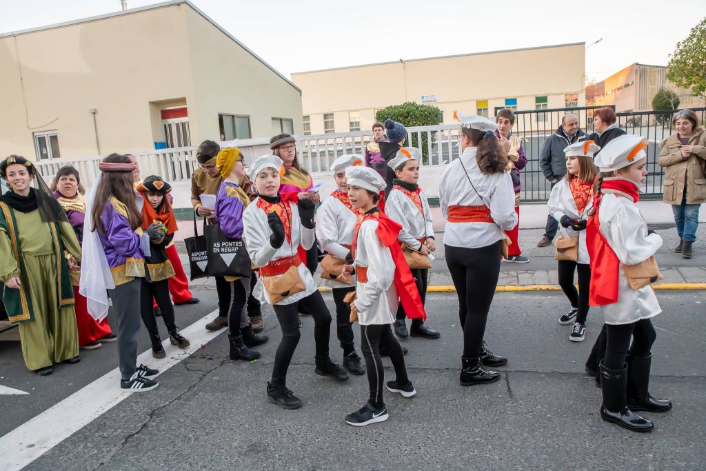 A partir das 6:00h da tarde diante do Colexio Monte Caxado ali estaban as carrozas con seos paxes, esperando por eles que este ano viñeron montados nos coches clasicos, en donde todos os ponteses estaban ali para recibilos e dende ali recorreron a Avd de Ortuigueira, Avd de Castelao, Praza do Hospital, Avd de Galicia, Rua Rosalia de Castro.