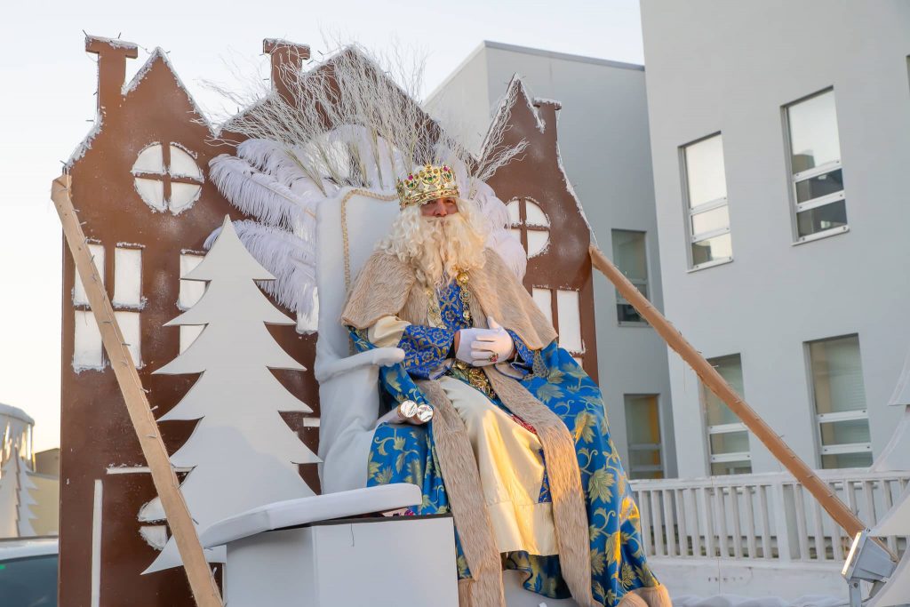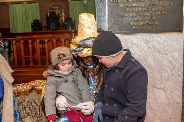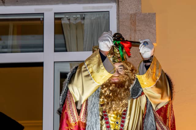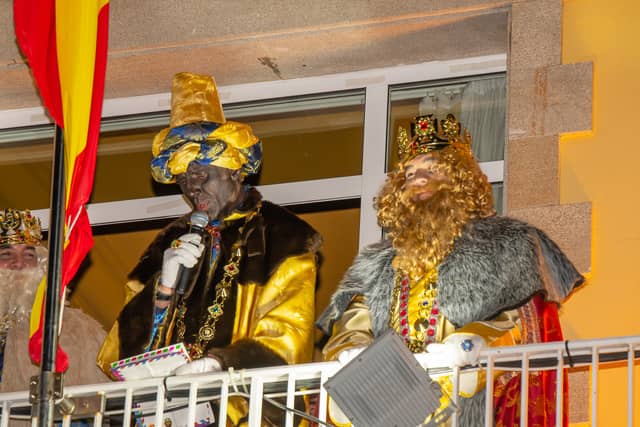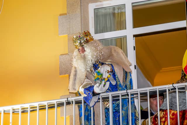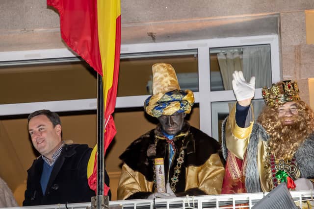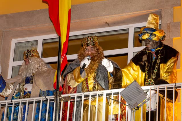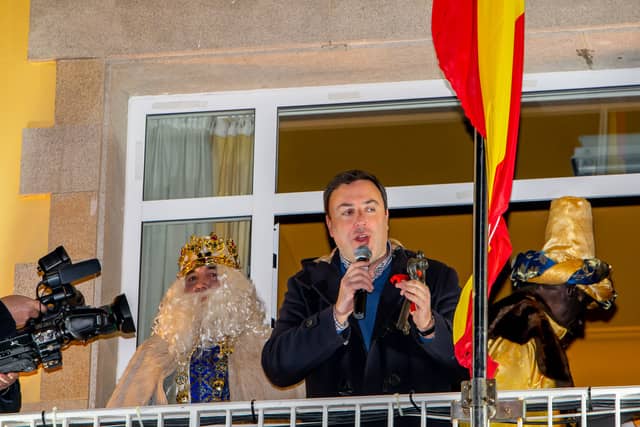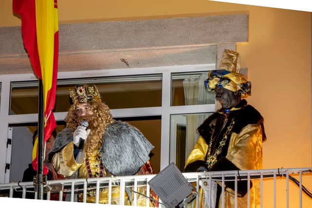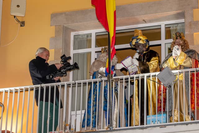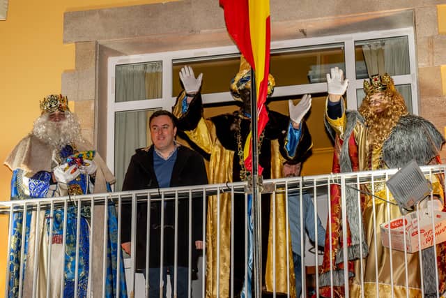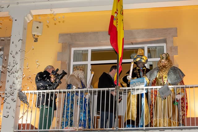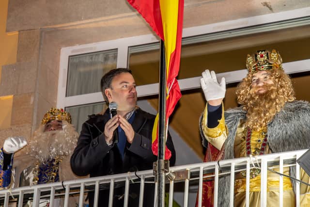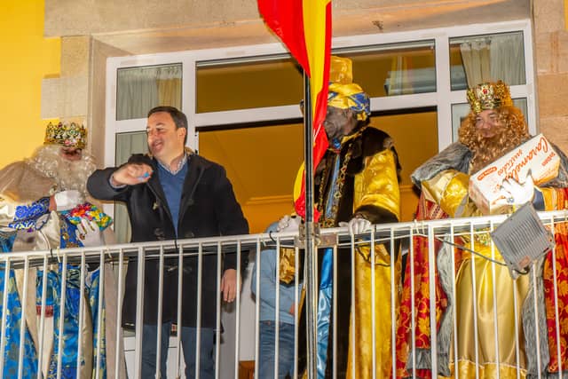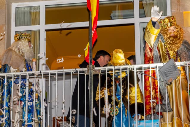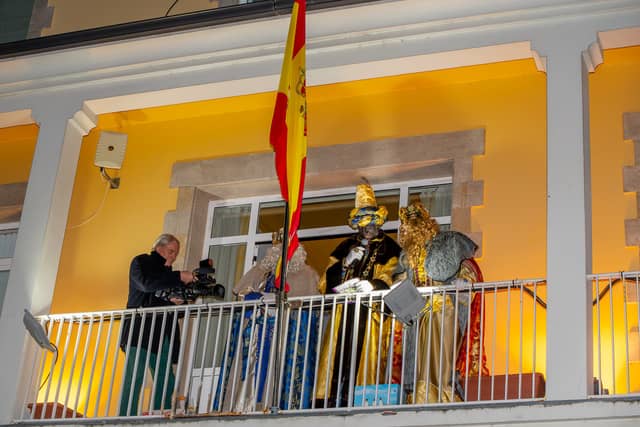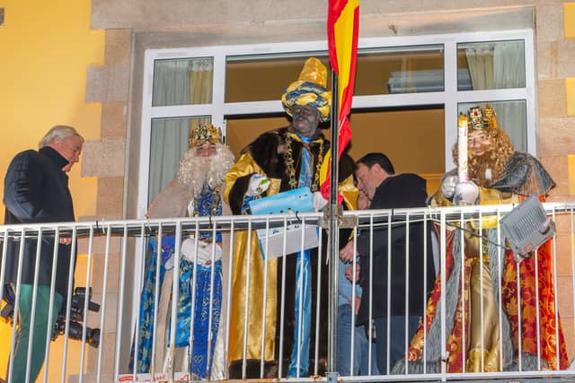 Dende o balcon do Concello as suas Maxestades de Oriente saudaron a veciñanza de As Pontes e leron algunhas cartas que os nenos estuveran votando no buzon instalado diante di Concello, para que os Reis na noite maxica lles poideran traer os regalos de Oriente.