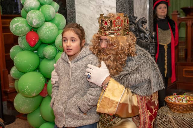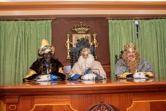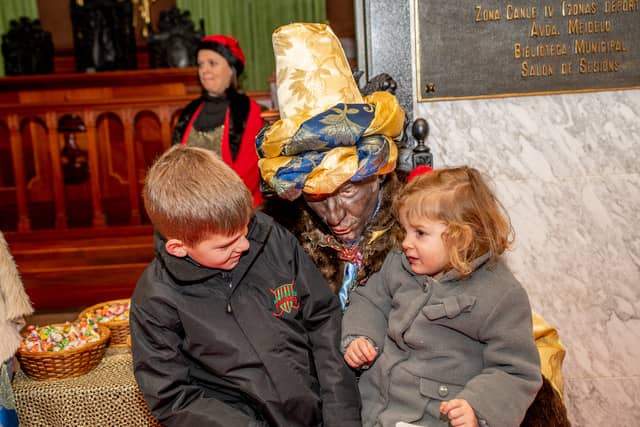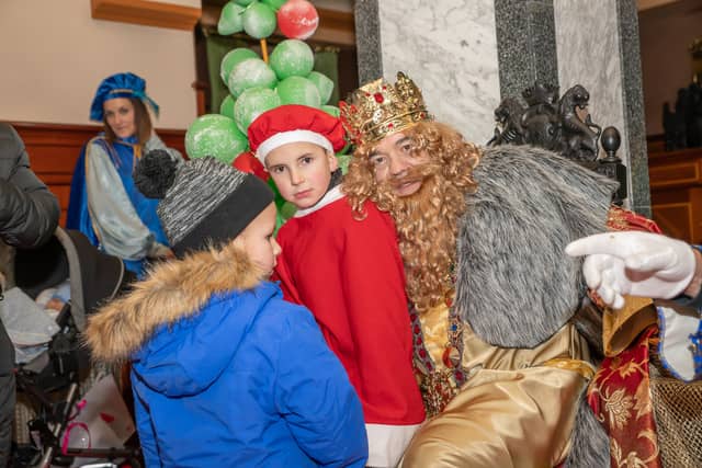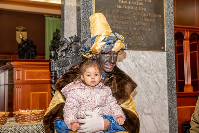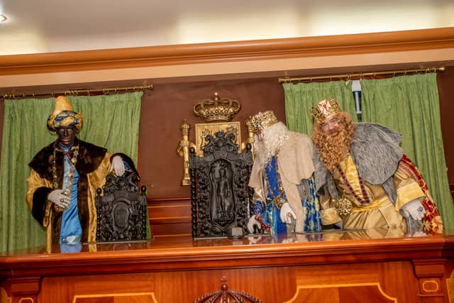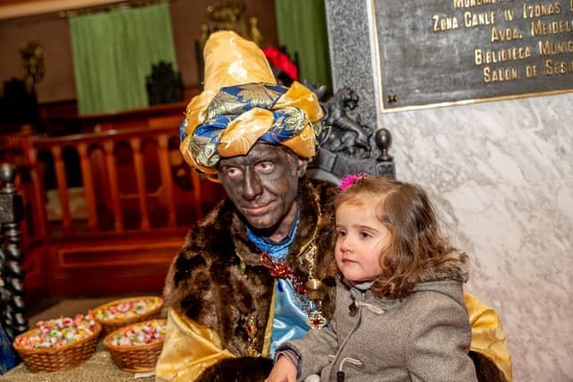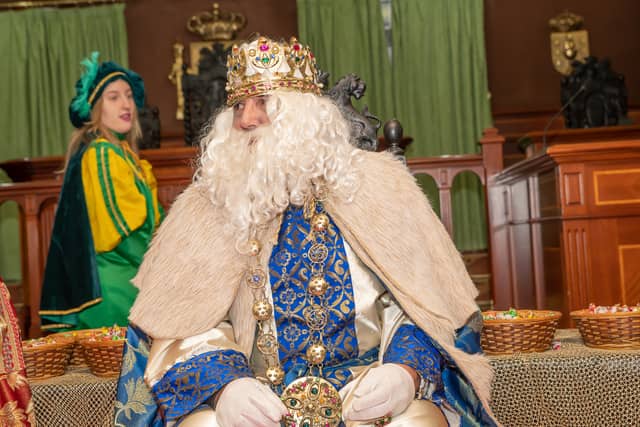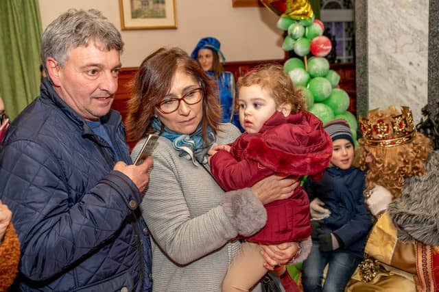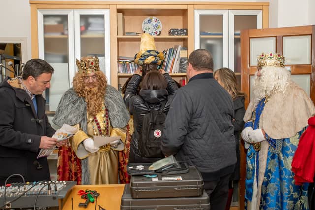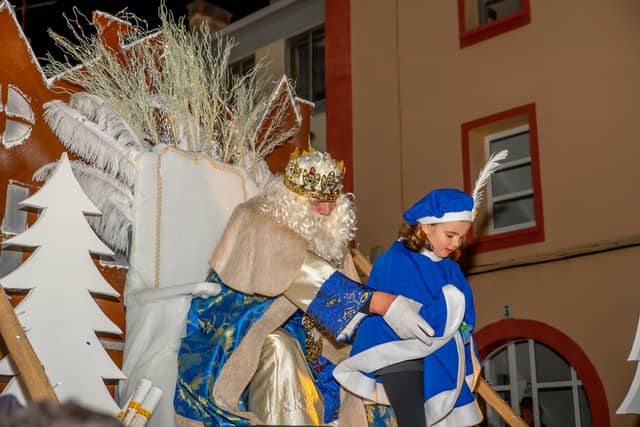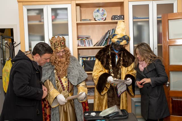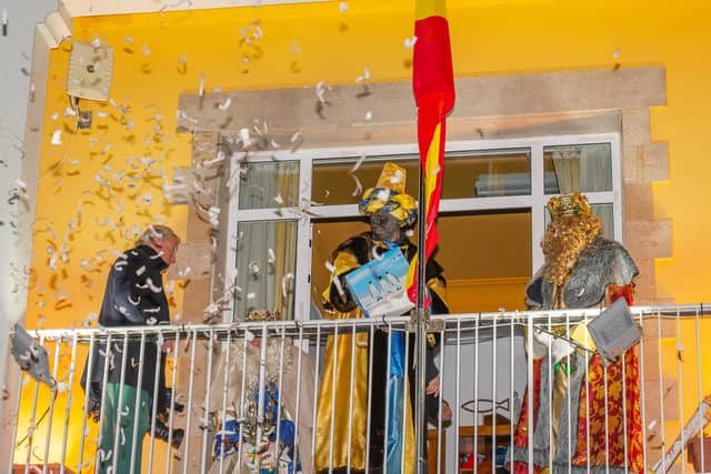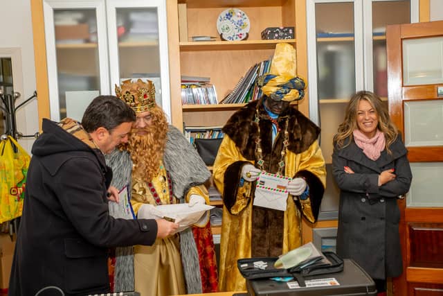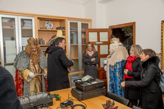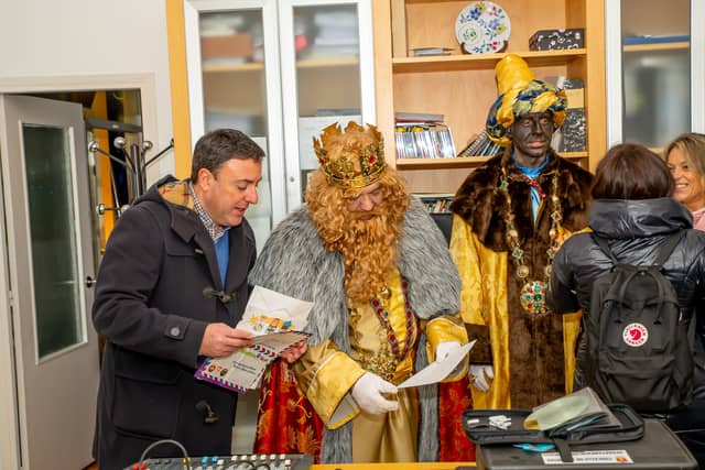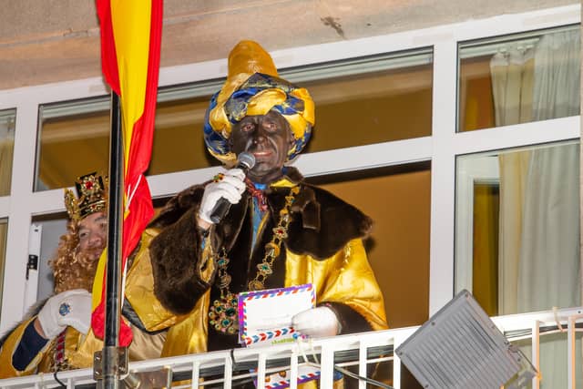 Dende o balcon do Concello as suas Maxestades de Oriente saudaron a veciñanza de As Pontes e leron algunhas cartas que os nenos estuveran votando no buzon instalado diante di Concello, para que os Reis na noite maxica lles poideran traer os regalos de Oriente.