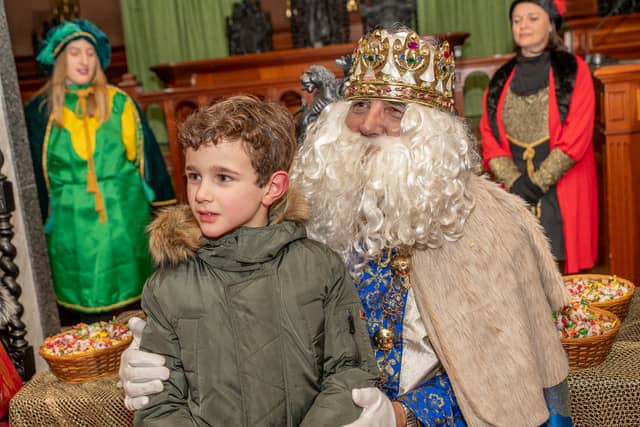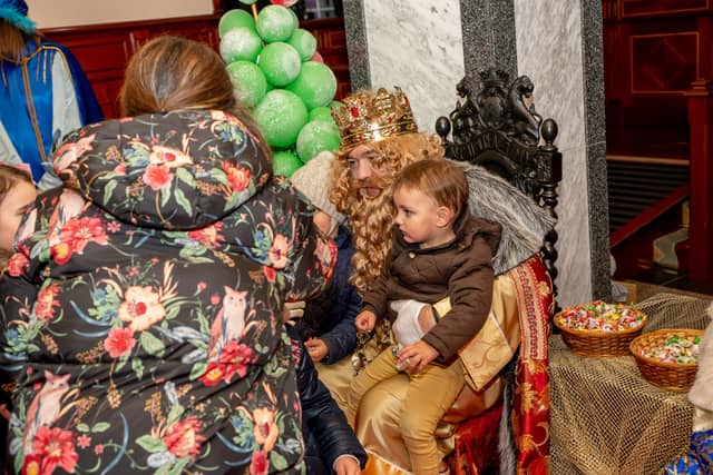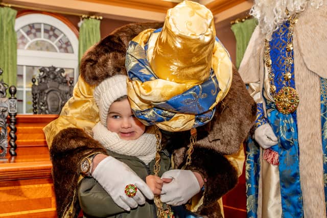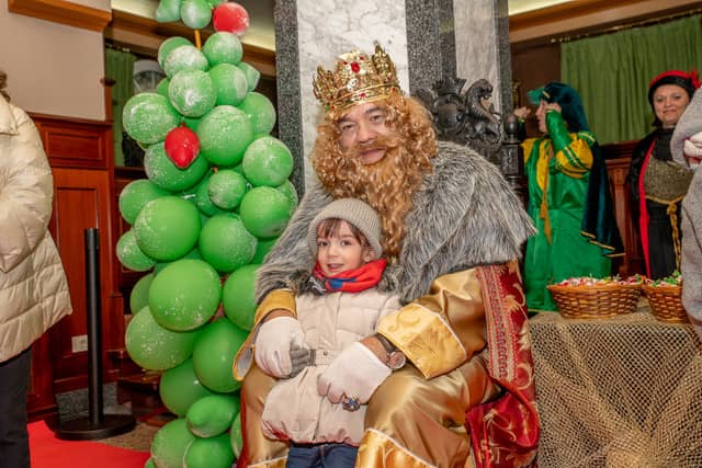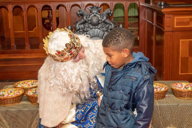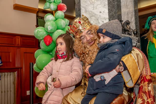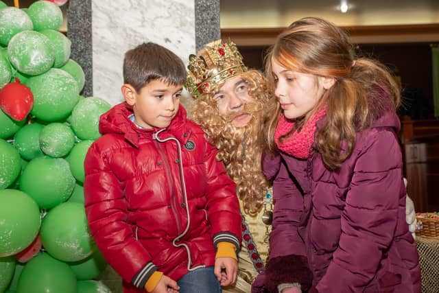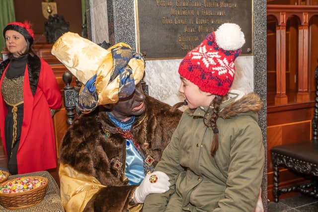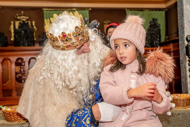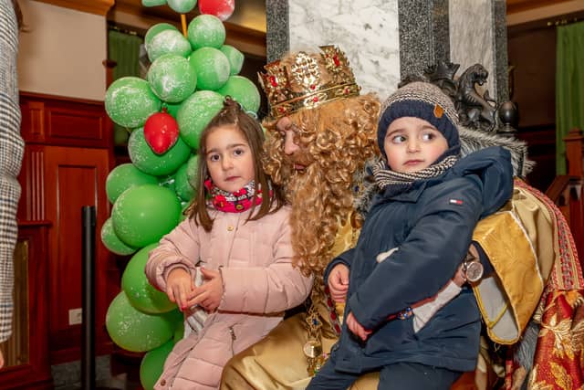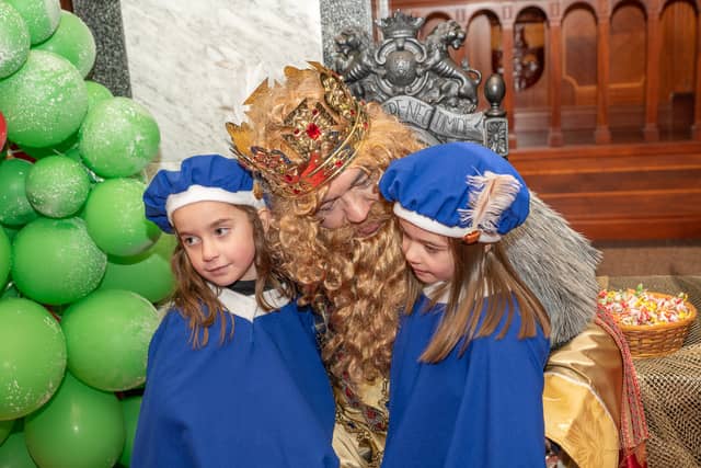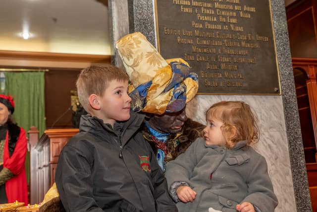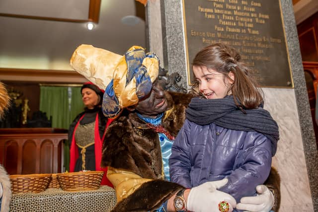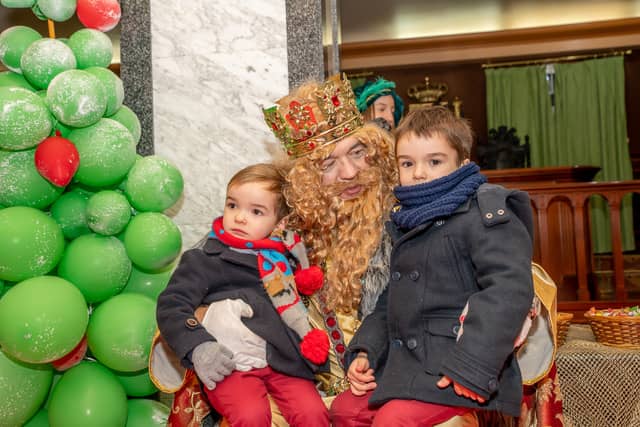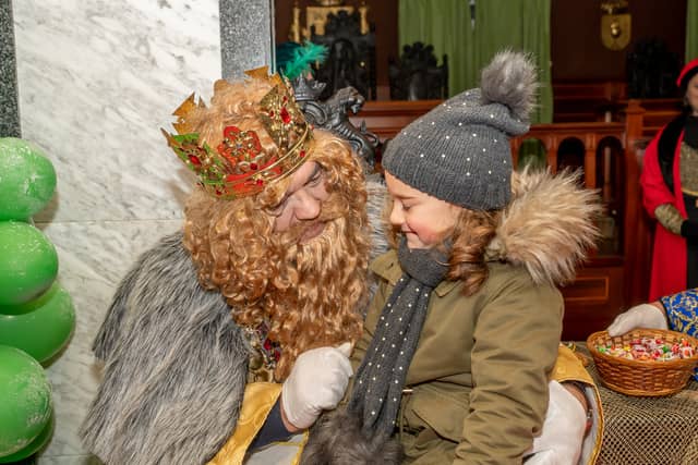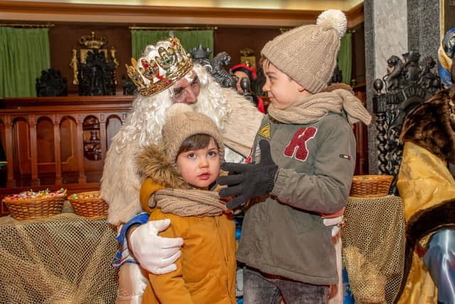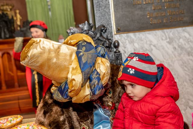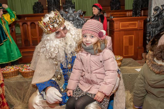 Dende o balcon do Concello as suas Maxestades de Oriente saudaron a veciñanza de As Pontes e leron algunhas cartas que os nenos estuveran votando no buzon instalado diante di Concello, para que os Reis na noite maxica lles poideran traer os regalos de Oriente.