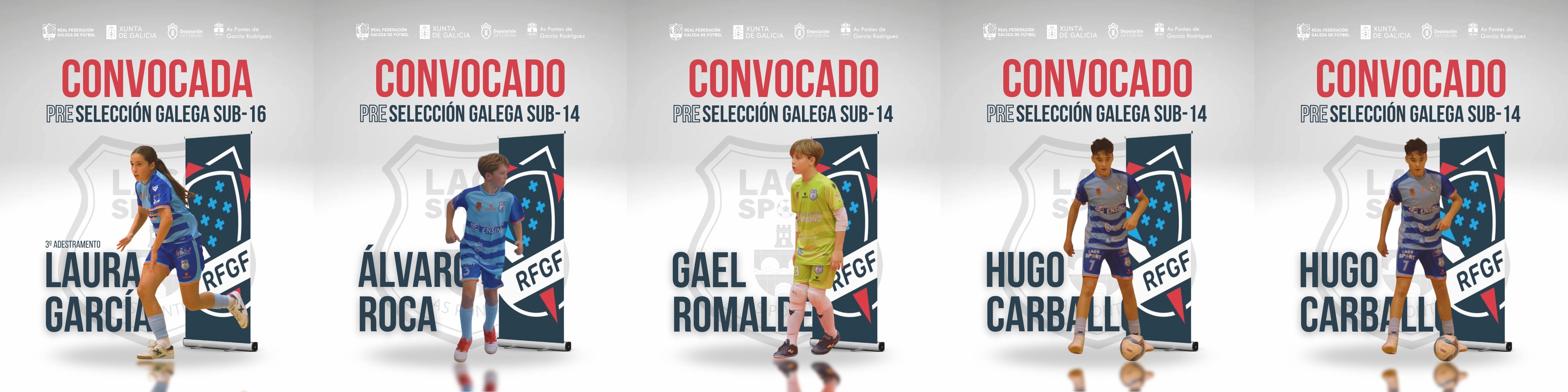 Pola súa banda, catro xogadores, Álvaro Roca, Gael Romalde, Hugo Carballo e Edgar Rodríguez, foron chamados pola Selección Galega Infantil Sub14 para uns adestramentos este pasado venres en Guitiriz, convocatoria que repetirán este venres, tamén en Guitiriz, Álvaro e Gael.