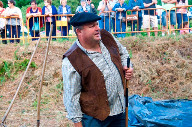 Tradicionalmente segábase a man, con fouciñas. Este proceso resulta moi laborioso e esgotador, polo que se decidiu empregar neste caso a segadora de peine do tractor. Precísanse así duas persoas, unha que conduza e outra que se coloque na segadora para ir repartindo o trigo en pequenos montóns, o que nesta zona se denomina amollarUnha vez segado o trigo, hai que facer pequenos mollos e atalos. Átase cos propios talos ou palla, de xeito que se collen uns poucos e se fai un lazo ao redor do mollo, o que nesta zona se denomina vencello. Iso sí, precísase certa destreza para que quede ben.