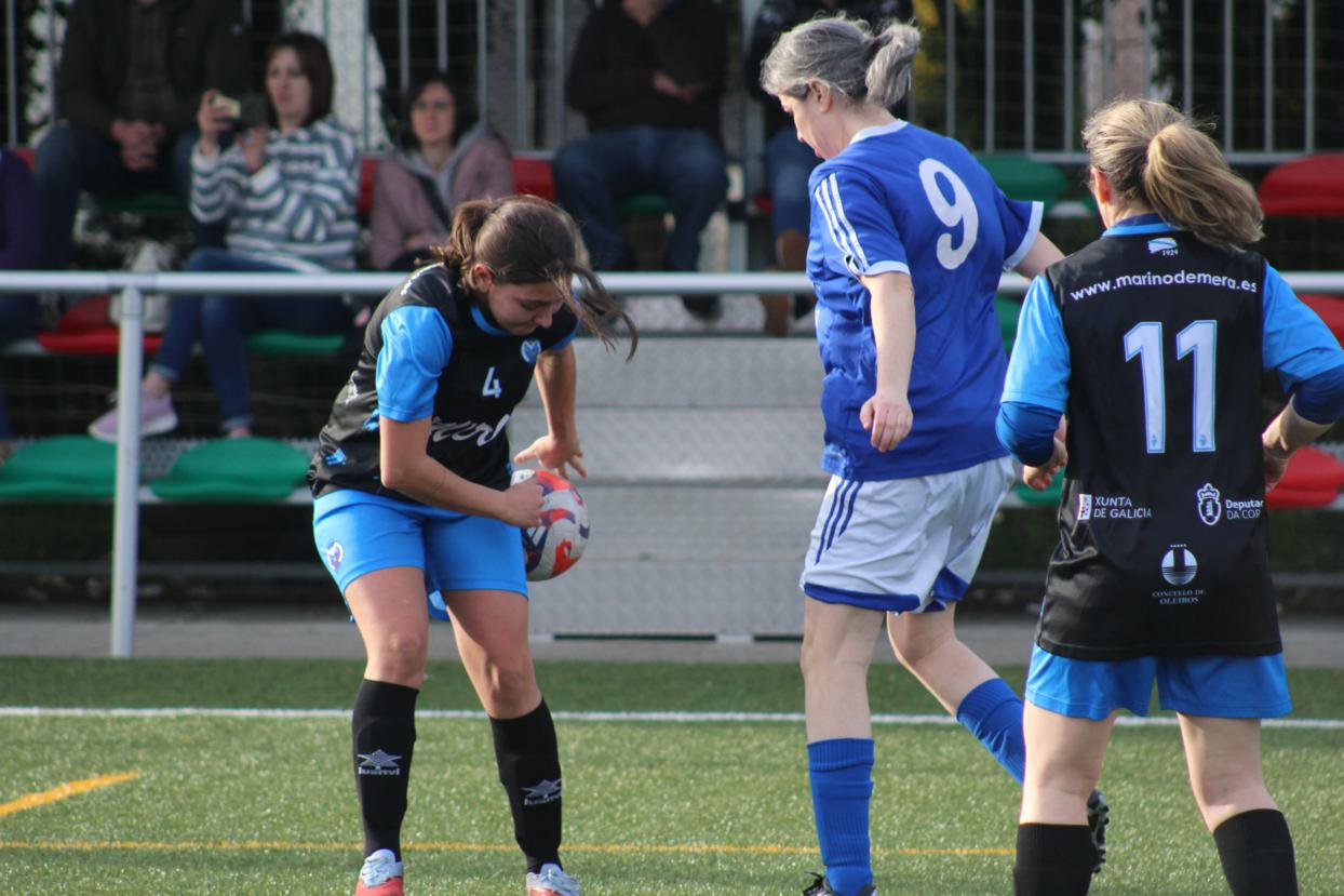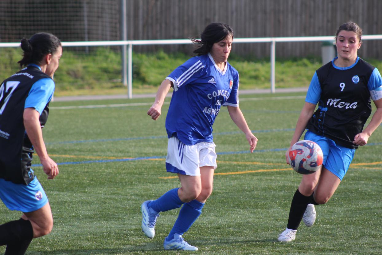 Derrota dun feminino pontés moi escaso de efectivos, e que a pesar de xogar a segunda parte cunha xogadora menos a piques estivo de empatar ante o conxunto de Mera.