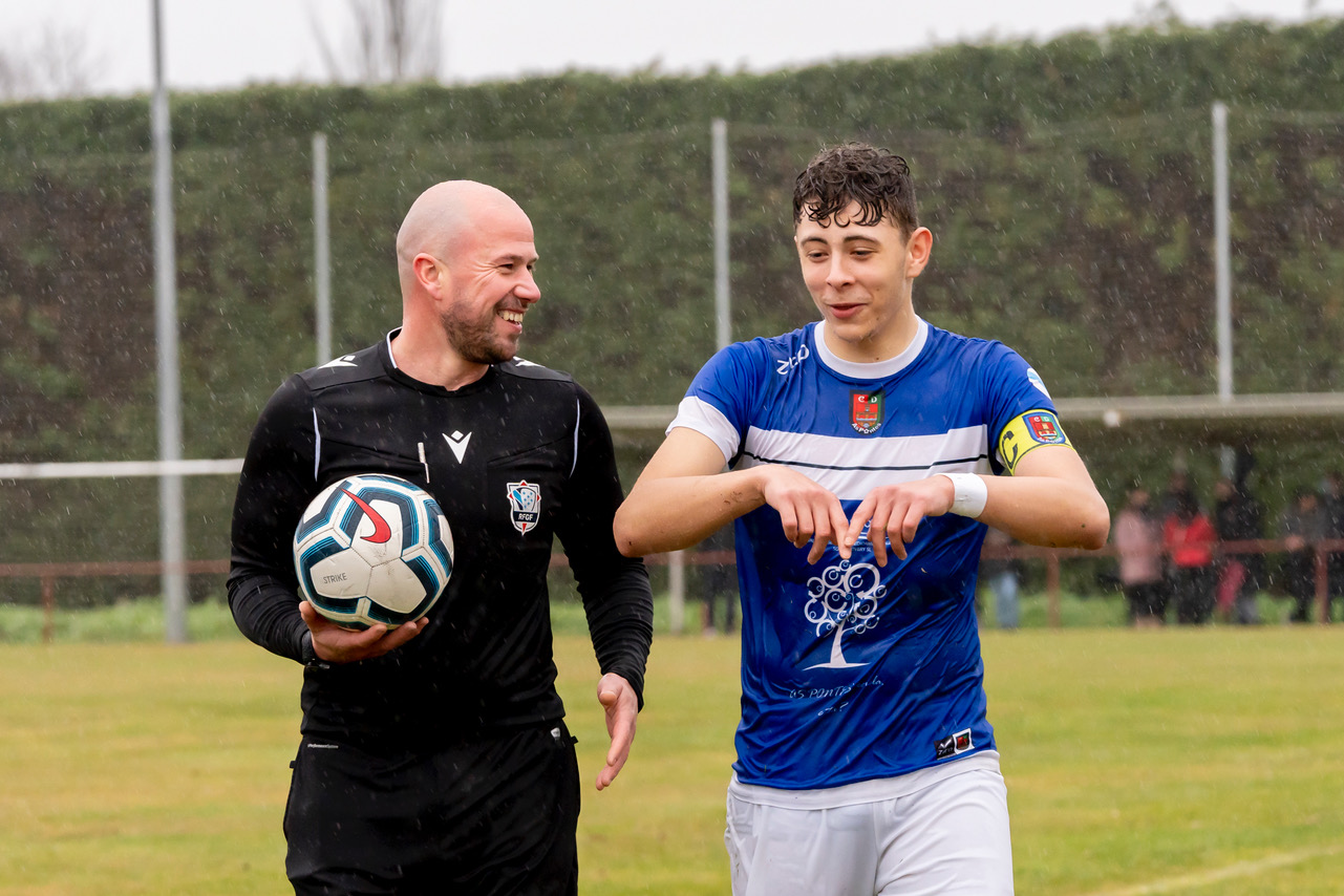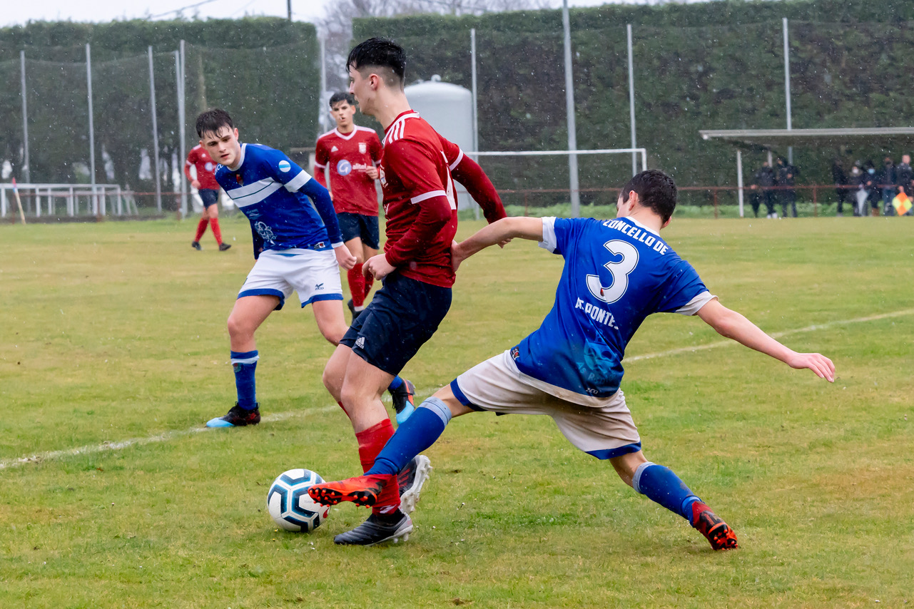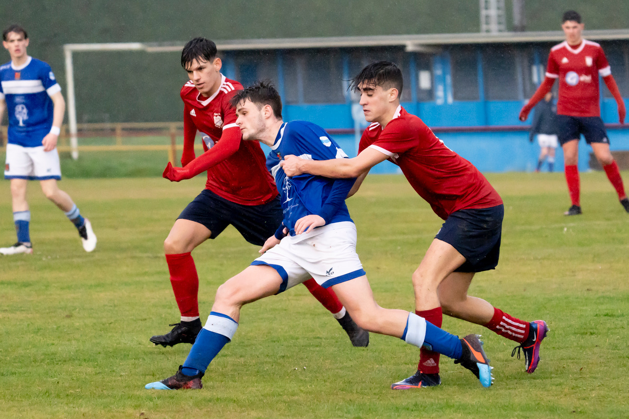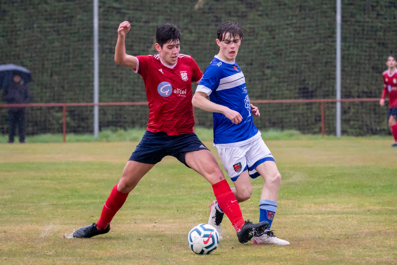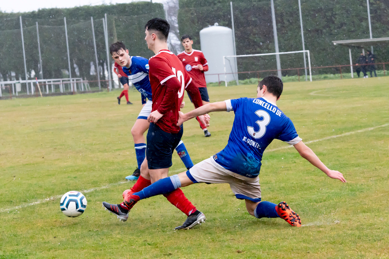 Bo Empate do xuvenil pontés neste martes festivo chuvioso ante o segundo clasificado, que se adiantou xusto antes do descanso, pero viu como a falta de cinco minutos perdía o liderato cun desafortunado tanto en propia meta do seu porteiro.