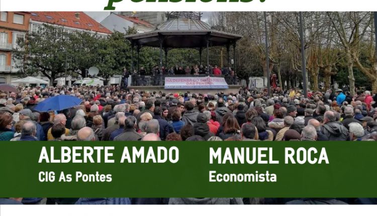 Programamos esta palestra con debate posterior aberto a todas as asistentes, na que quixemos que participaran todos os sindicatos e organizacións máis representativas da nosa contorna coa finalidade de garantir a pluralidade e ter unha idea dos motivos que levan a cada unha delas á mobilización. Finalmente, os representantes de CCOO e UXT desculpan a súa ausencia. Si nos acompañará o representante local da CIG, Alberte Amado, e mais o economista recén xubilado e colaborador activo coa Marea Pensionista, Manuel Roca.