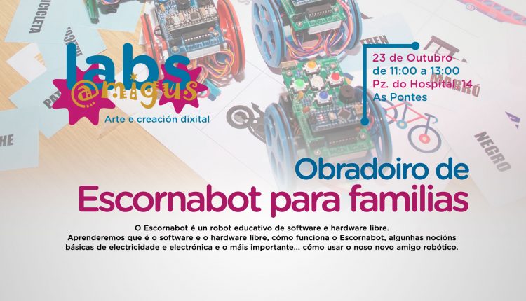 O curso é gratuíto, as inscricións formalizaranse por orde de rexistro en https://www.amiguslabs.org/obradoiro-de-escornabot-para-familias/.