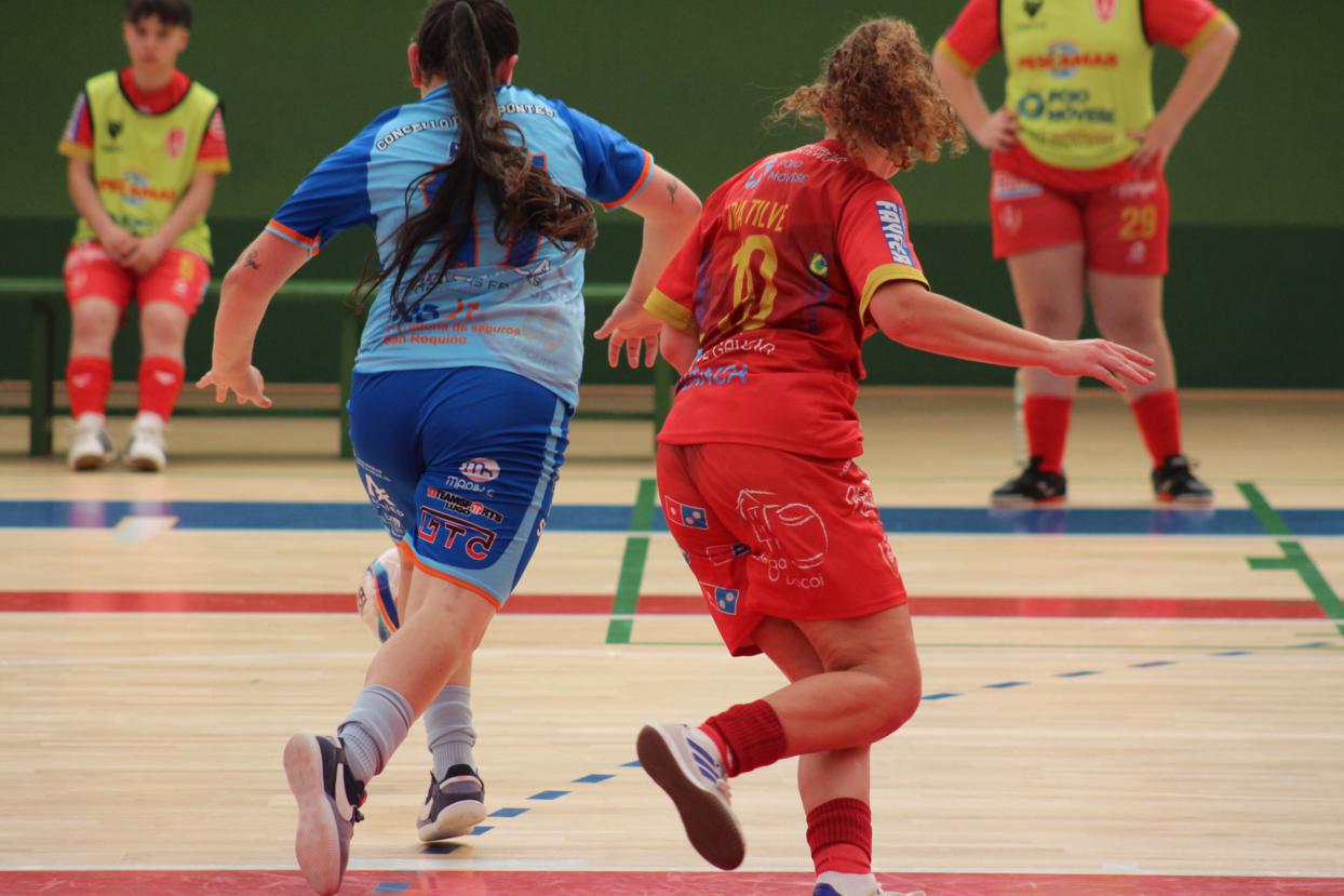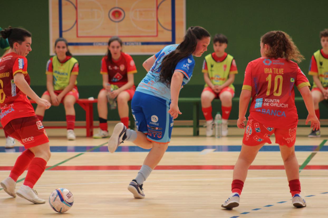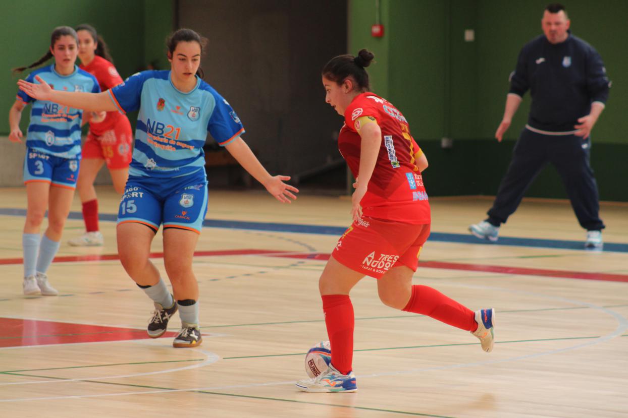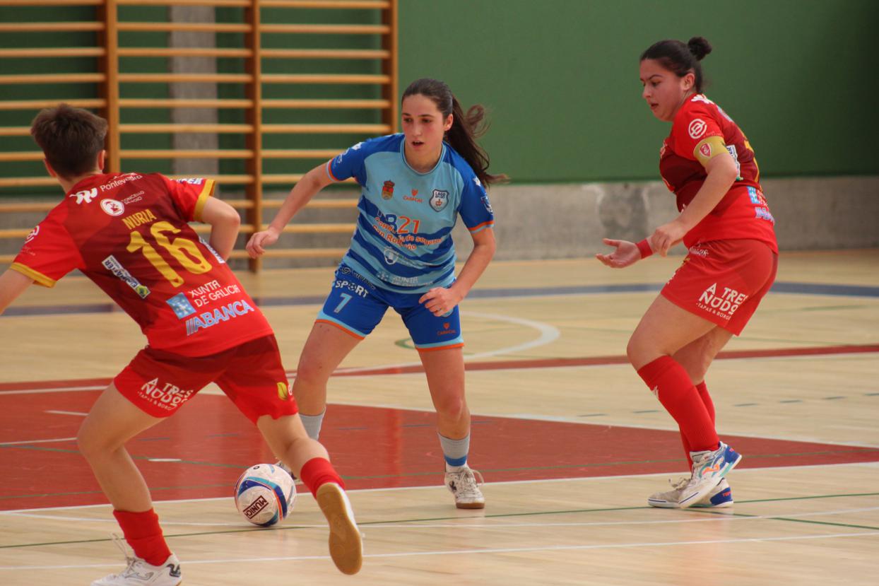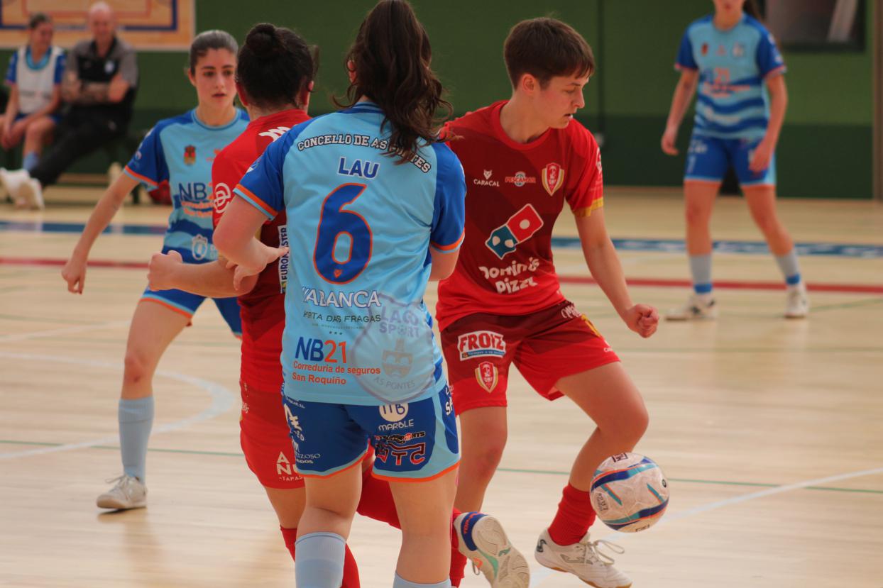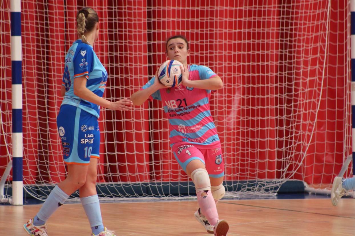 A raíz de ahí o filial pontevedrés xogou moitos minutos co xogo de 5 para 4 pero o cadro azul defendeuse como gato panza arriba, aínda que algo afundido por momentos, pero moi grande Nerea, e as vermellas so puideron reducir a desventaxa ata o 4-2 definitivo.