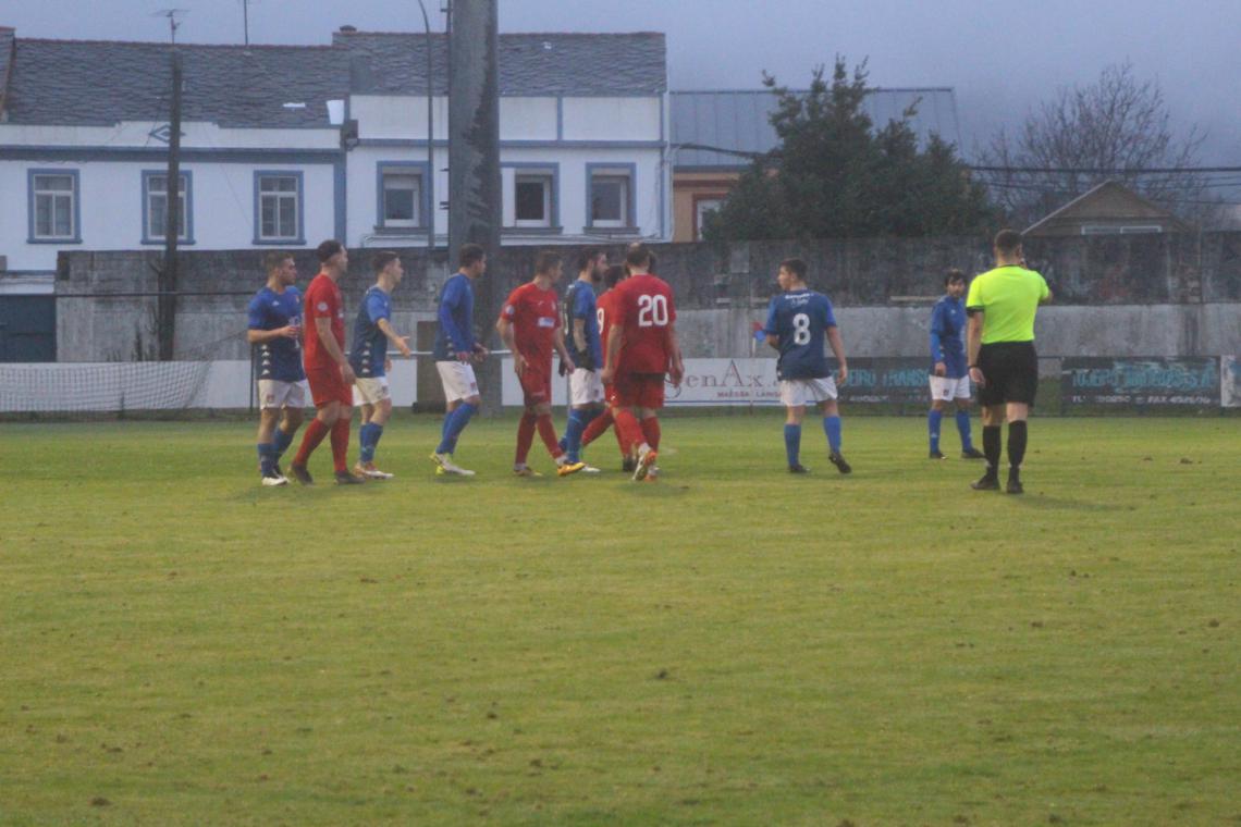Reclamaron unha man na área visitante os locais, pero foi nunha perda de balón cos vermellos con todo tentando buscar o gol da vitoria que lles mantivera o liderato unha semana máis que quedou so Sergio, recorreu o campo, prantase ante Liz e bateo picandolle o balón no último minuto (95´).