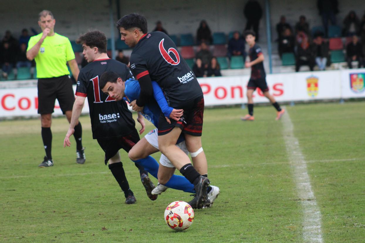 Sufriu o líder para gañar no Campo do Poboado, e pese a adiantarse 0-2 , os azuis igualaron por medio de Guizán e Luis Molina, ata que trala reanudación nunha xogada de estratexia facían os visitantes o 2-3 que non se movería pese aos intentos de uns e outros.