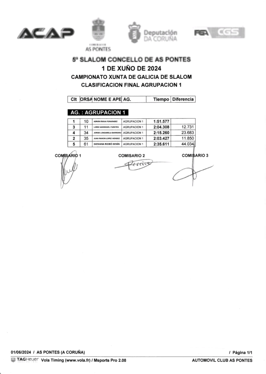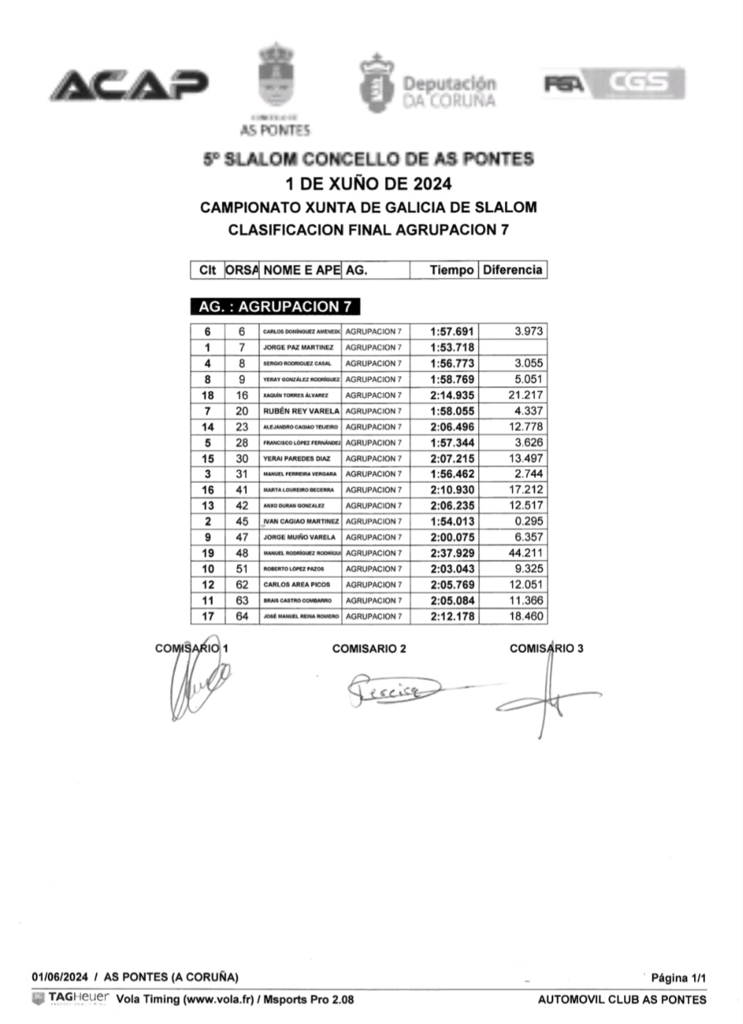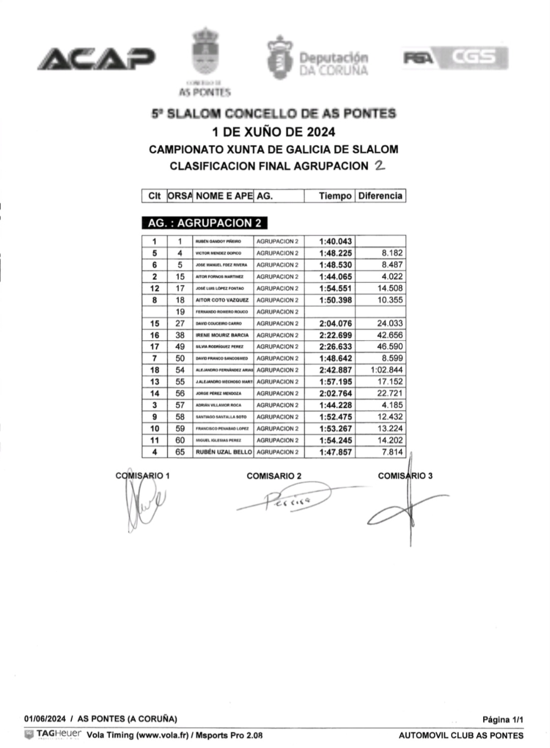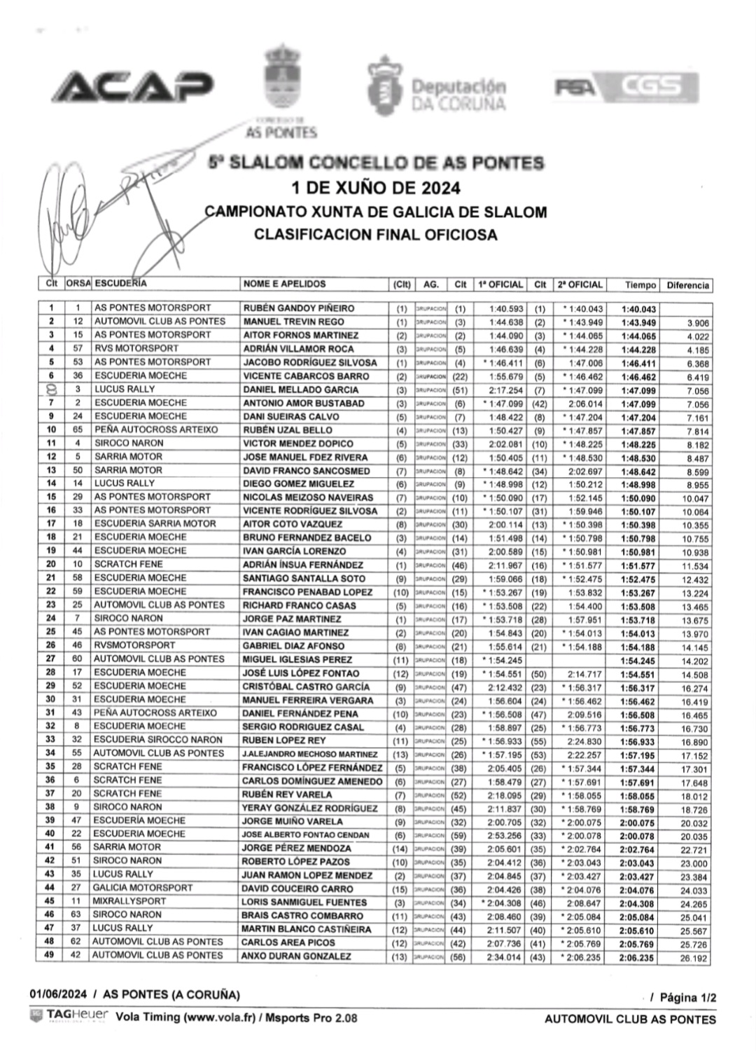 Este sábado a escudería Acap xuntaba unha morea de afeccionados ó redor do circuito de karts de As Pontes para desfrutar do V slalom vila de As Pontes nun día de moito vento que rematou co primeiro posto no peto de Rubén Gandoy no seu Peugeot 206 XS cun tempo de 1:40.043.