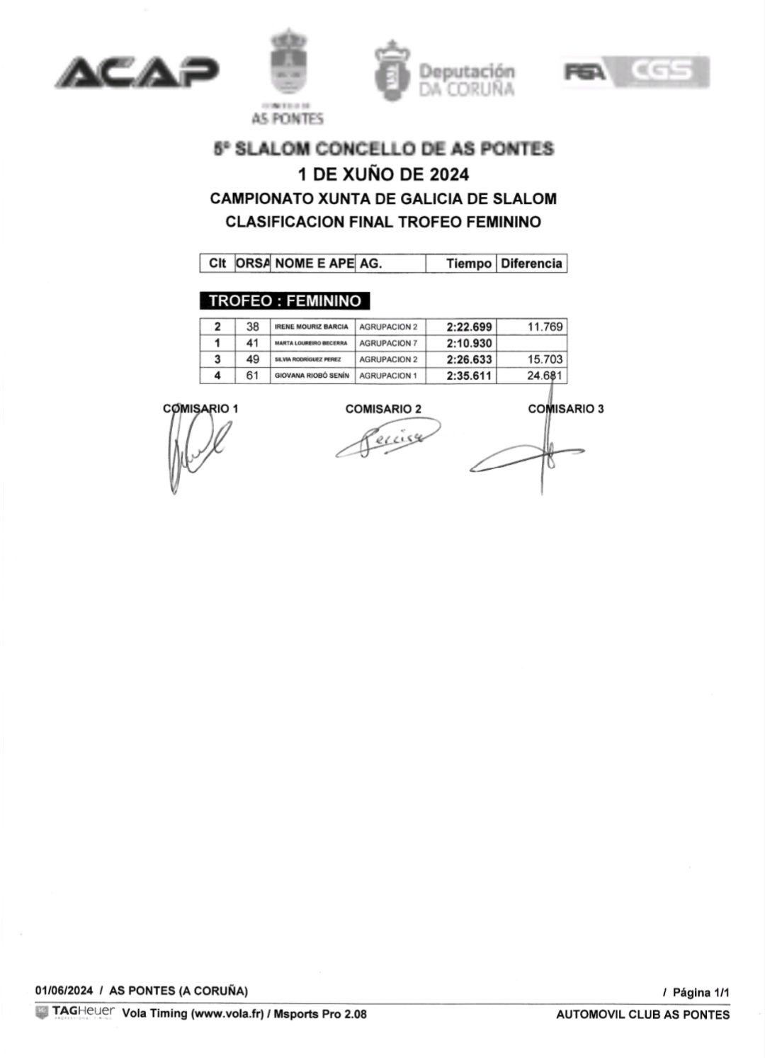 Os resultados de todo o día foron os seguintes