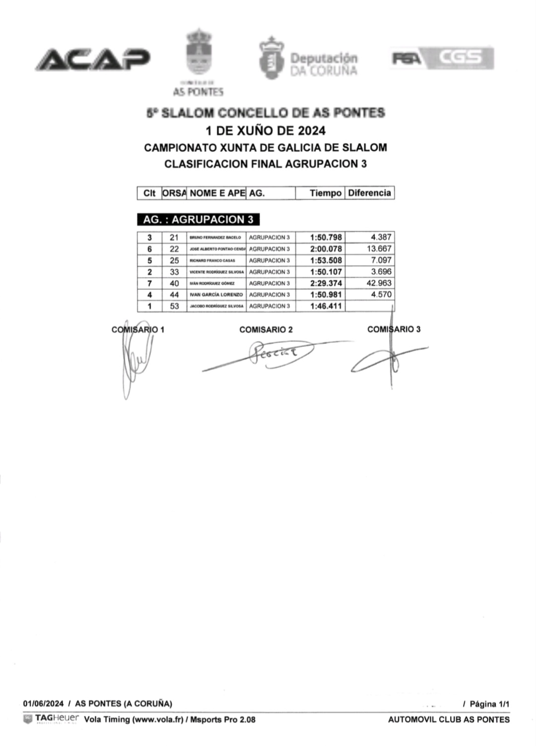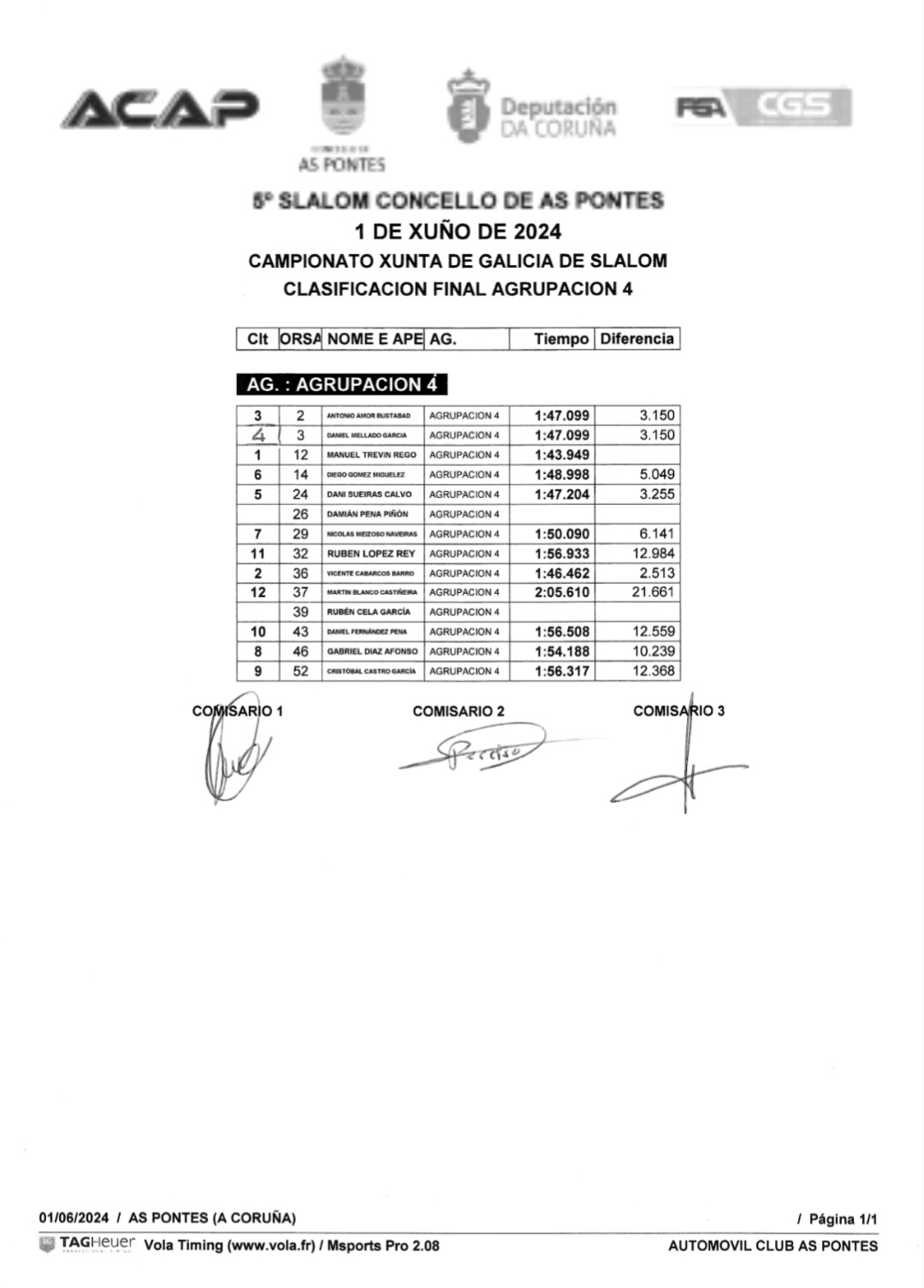 Xeral agrupación 3. Vehículos de competición de tracción dianteira dende 1601 cc.