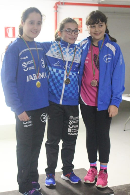 Infantil Feminino.1º Raquel Fontao (Olympo), 2º Lara Ríos (Náutico Narón), 3º Noa Cupeiro (Olympo)
